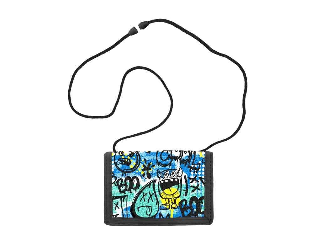 Jungs-Brustbeutel Kinderbörse mit Sichtfenster, Monster blau grün