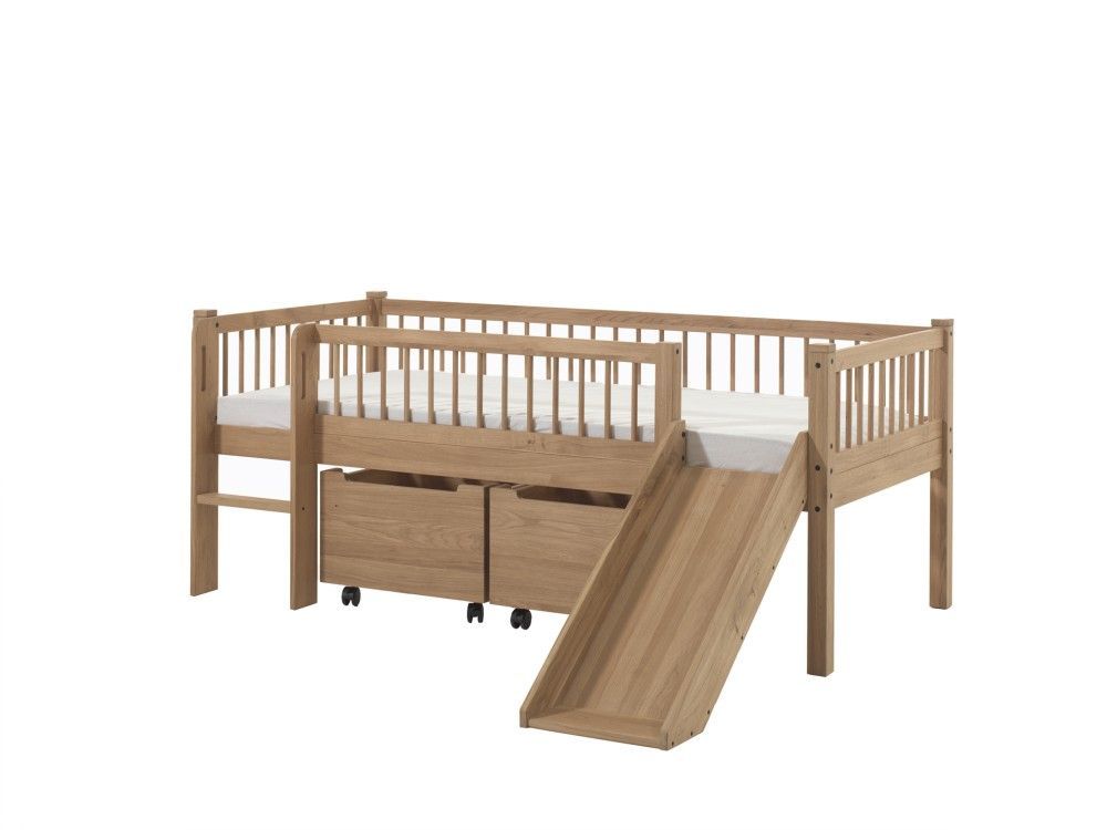 VIPACK Junior-Spielbett Höhe 85 Leiter Rutsche 2 Boxen Lattenrost 90x200 Eiche natur