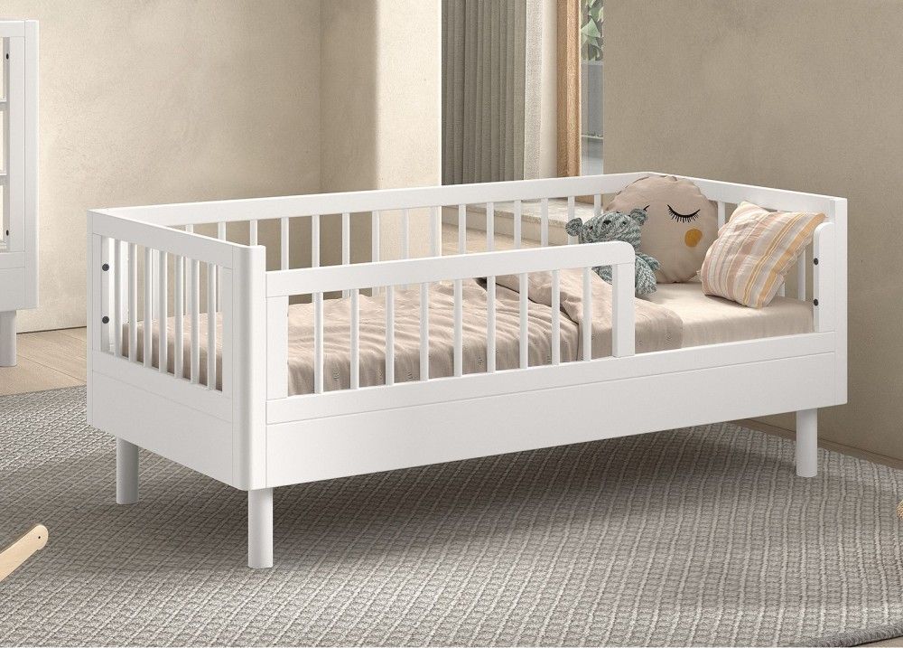 VIPACK Juniorbett Rausfallschutz Kinderbett Gitterbett 70x140 Buche massiv Weiß