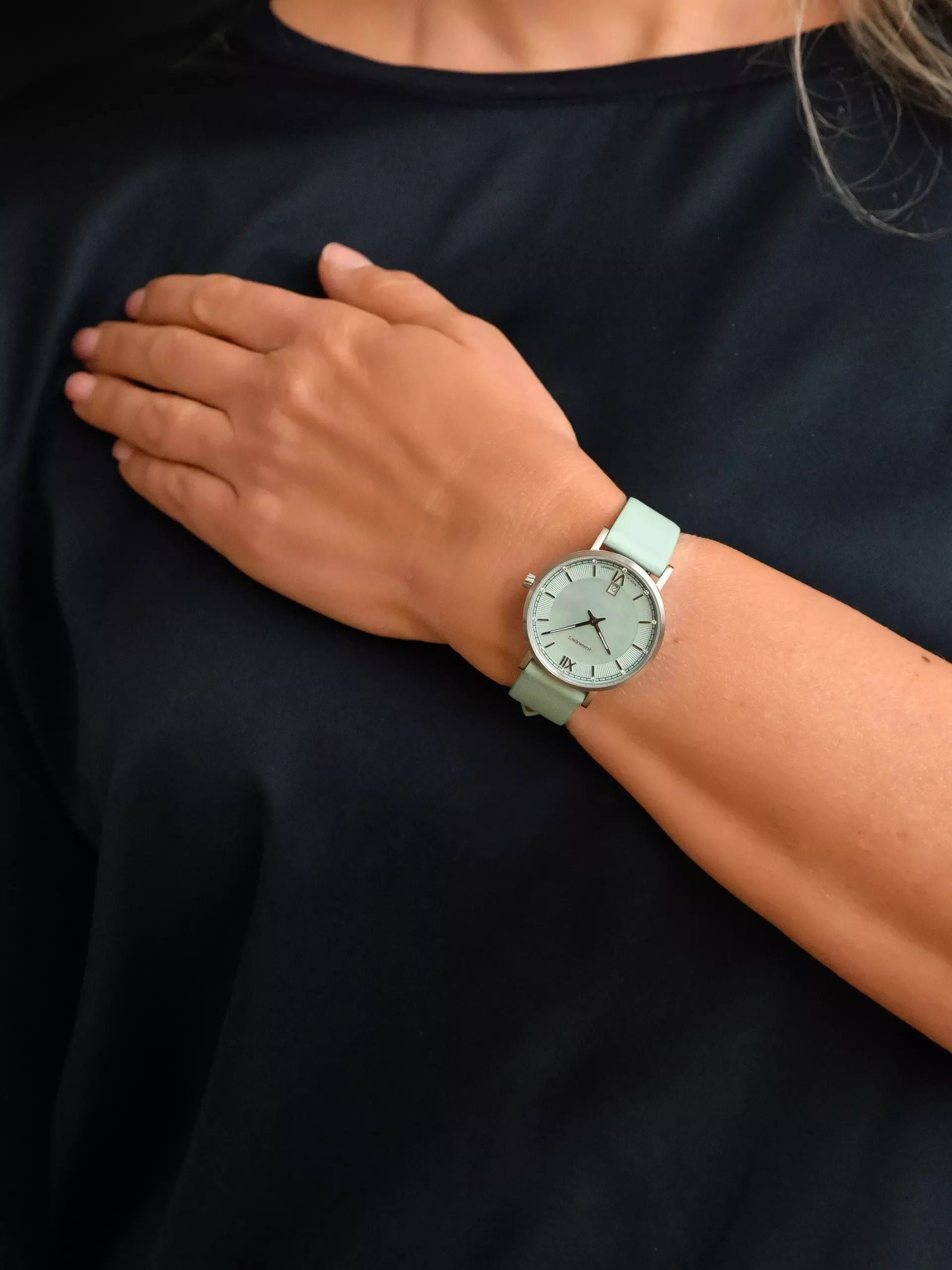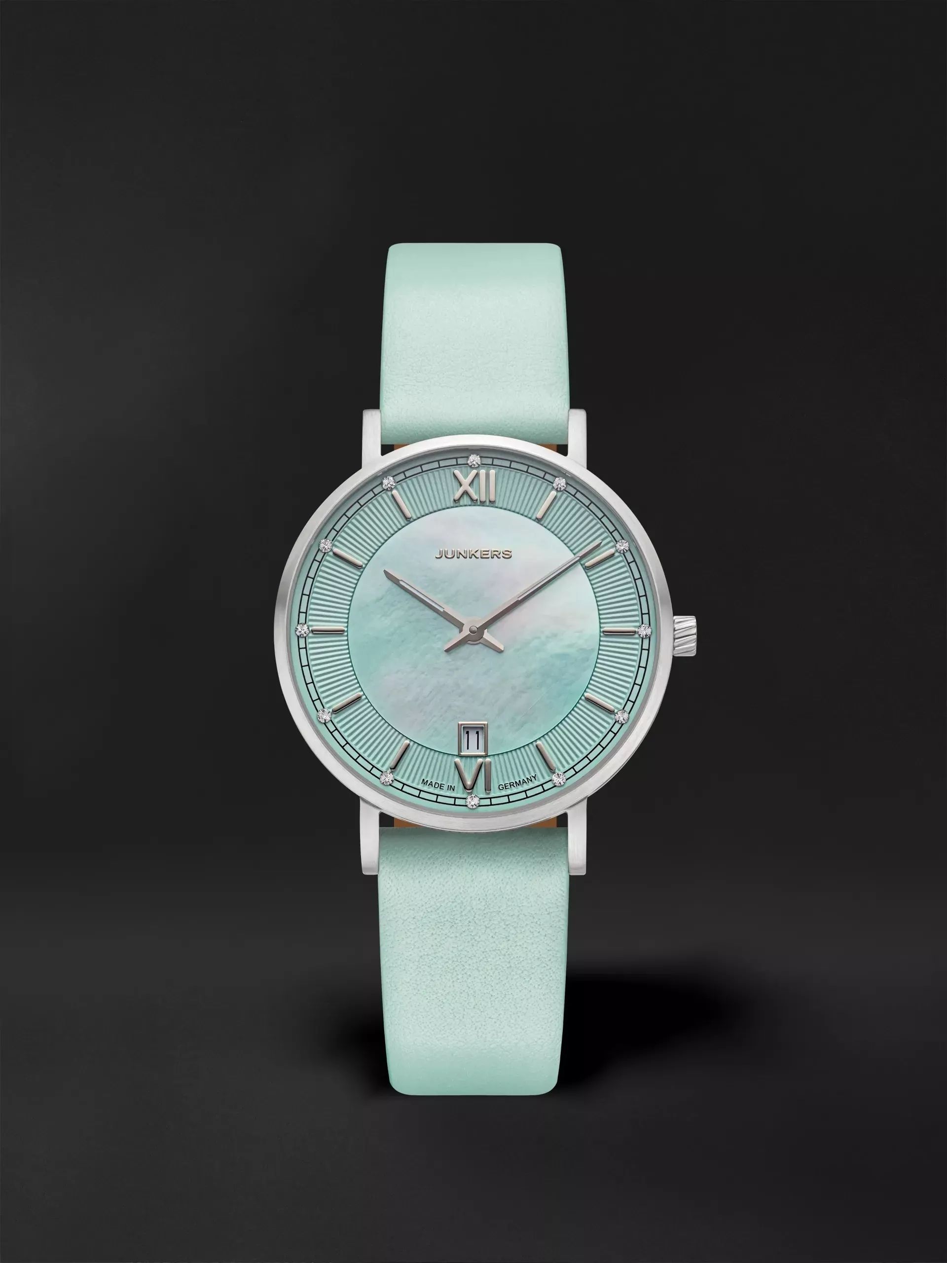 Junkers Annelise 34 Perlmutt Damenuhr 951.03.16 Lederarmband Grün