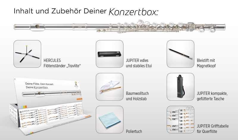 Jupiter JFL 700 EC in C Konzertbox versilbert Diese hochwertige Jupiter 700 Series Querflöte wird in der praktischen Jupiter Konzertbox geliefert. Die Jupiter Konzertbox ist ein Verwandlungskünstler und wird mit einfachen Handgriffen zum Notenpult mit integrierter Grifftabelle. Neben diesem großarti