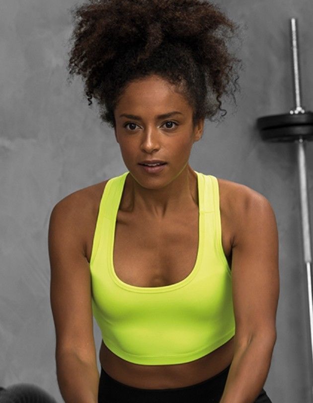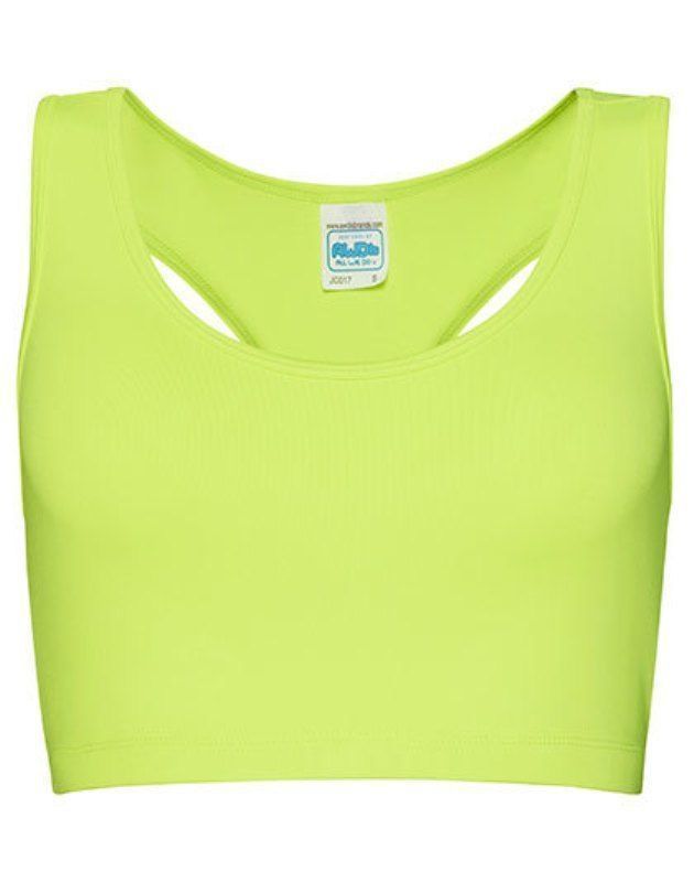 Girlie Cool Sports Crop Top Just Cool Mischgewebe von AWDis mit Elasthan für hohen Tragekomfort und hervorragende Passform Racerback-Schnitt U-Ausschnitt Schlupf-Design Elastisches Unterband für sichere Passform Sauberer Abschluss durch abgesetzte Einfassung an Ausschnitt und Armlöchern Einfach abne