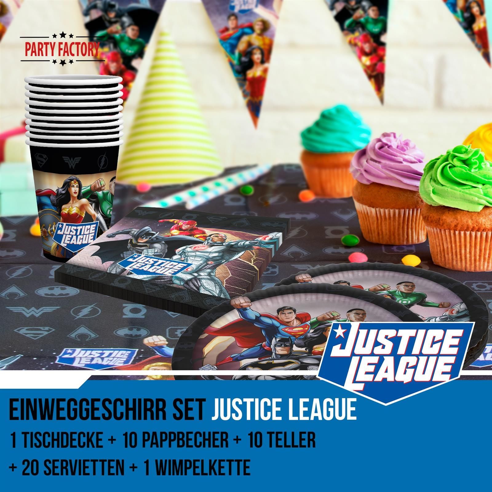 Justice League Party-Set Einweggeschirr großes Party-Dekoset 42-lig Superhelden