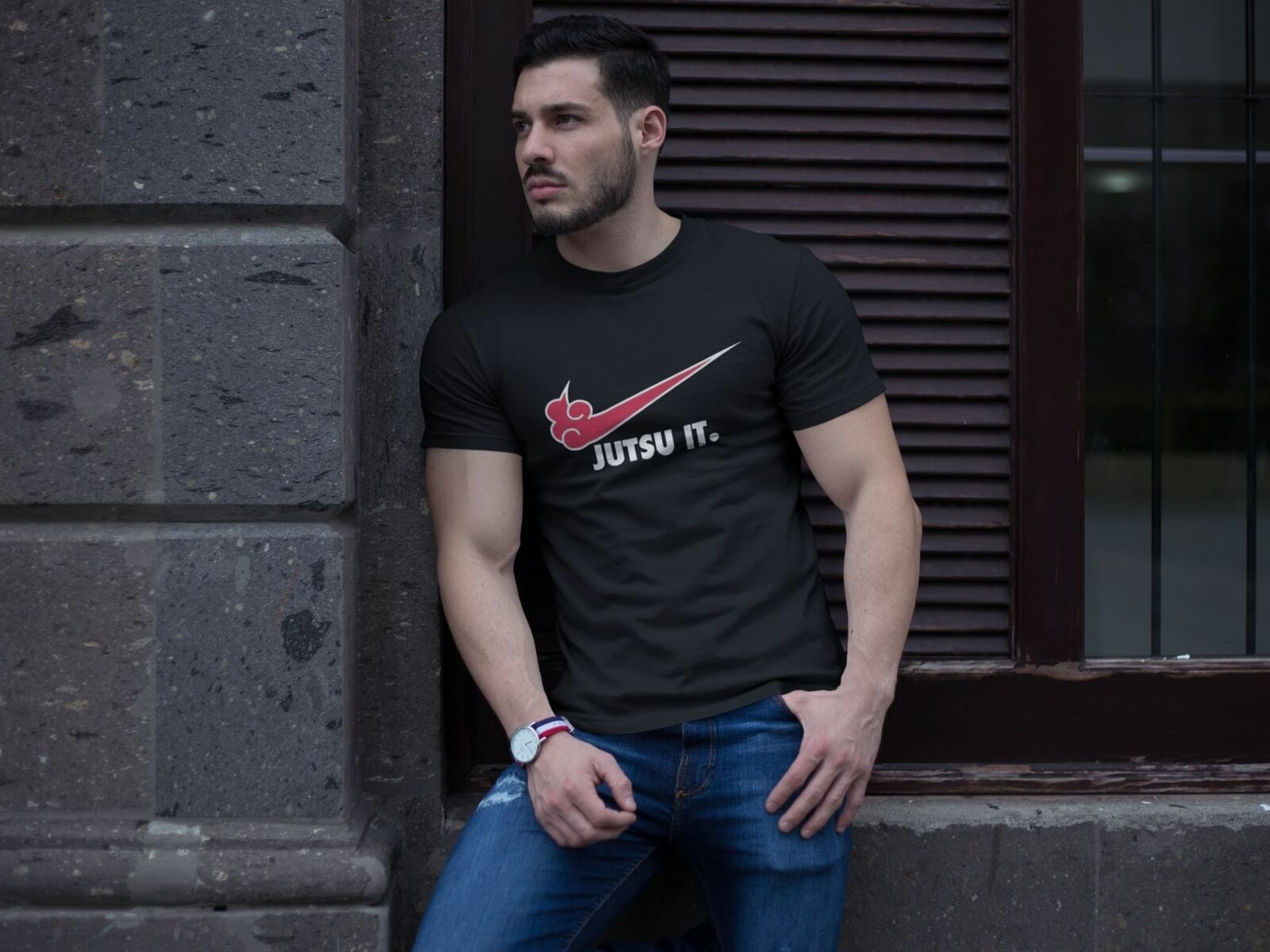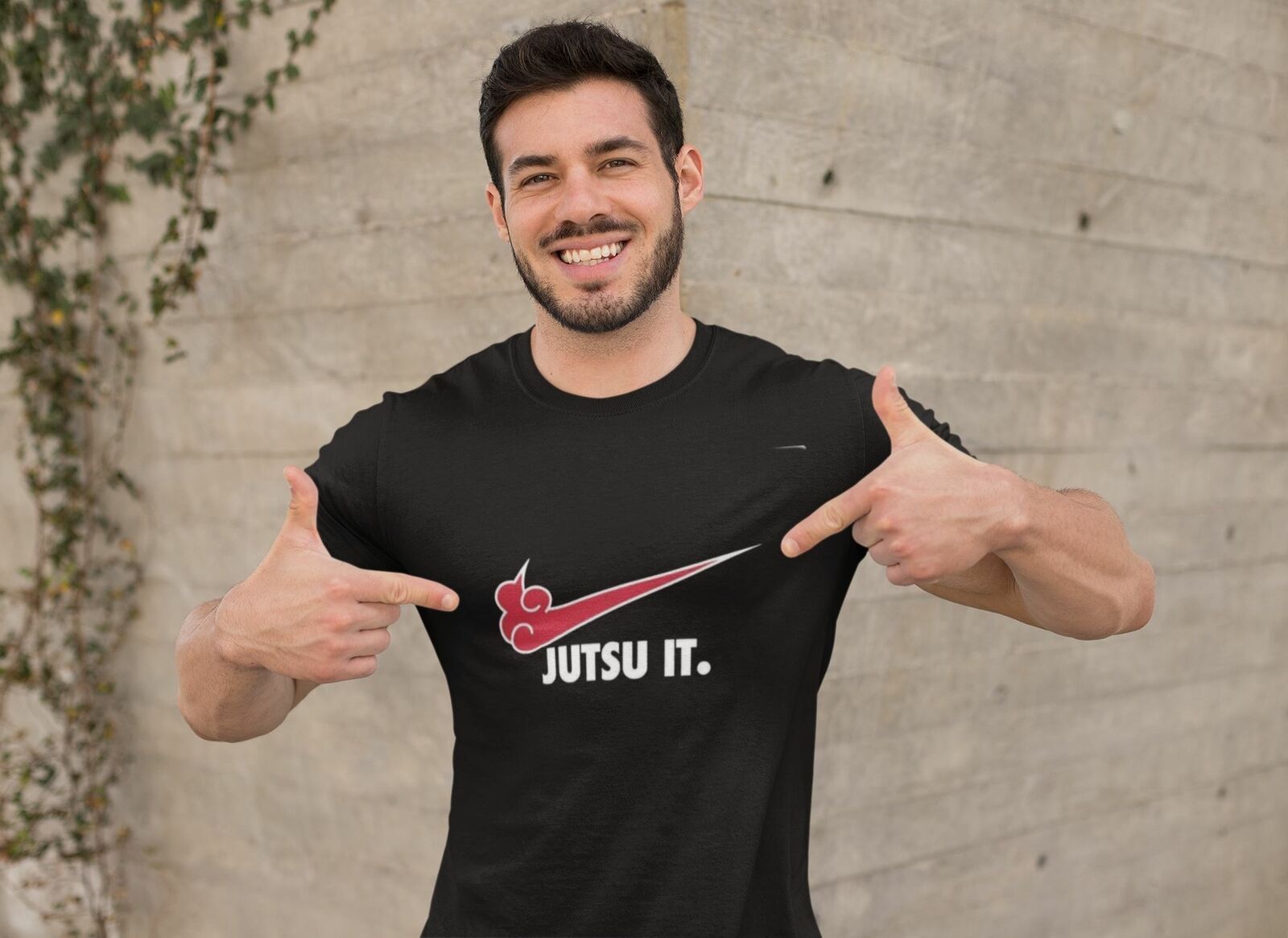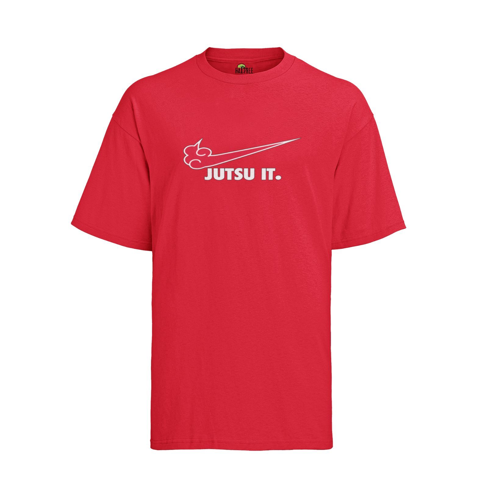 Jutsu It. Naruto Akatsuki Logo Nike Parodie Rote Wolken Anime T-Shirt Herren