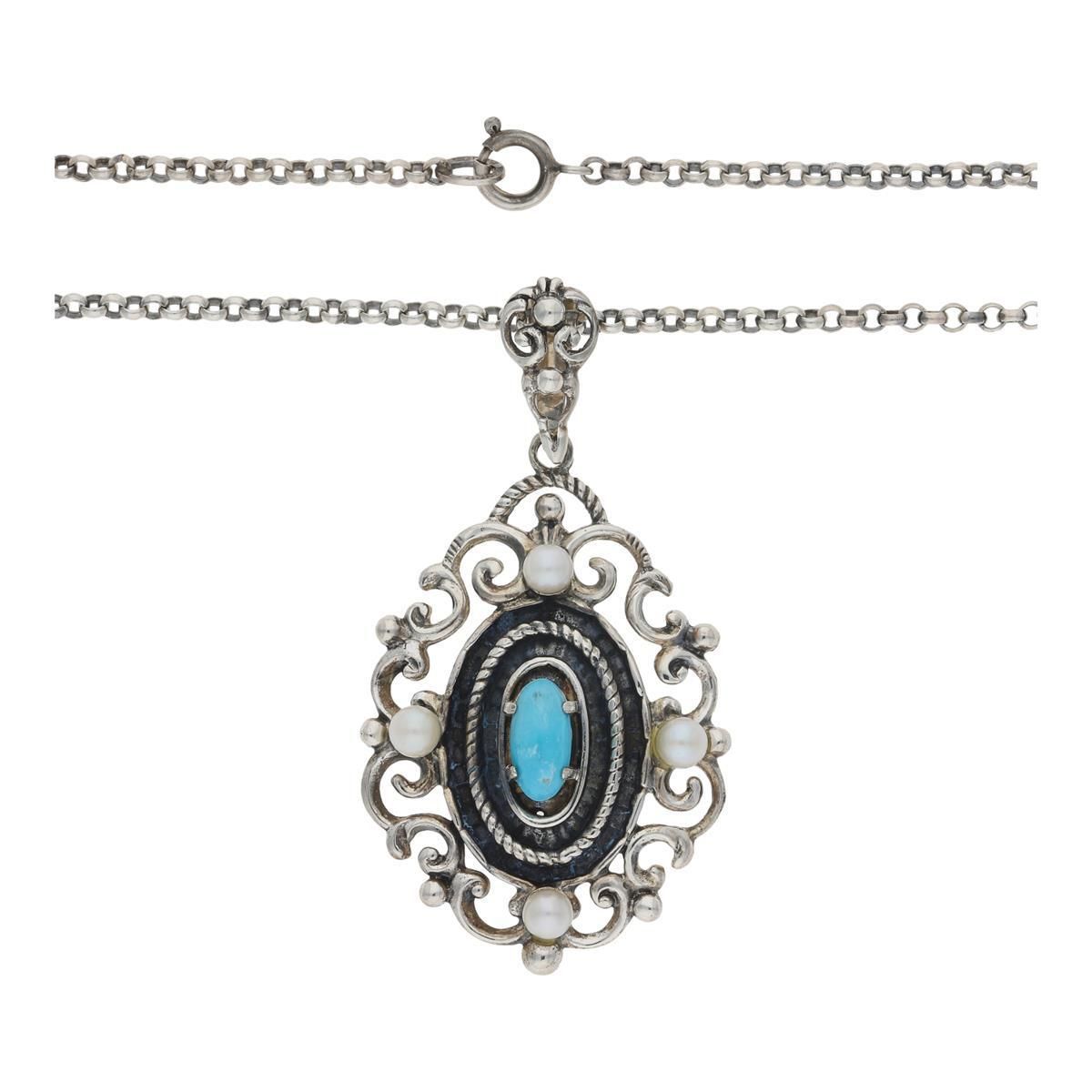 JuwelmaLux Collier 835/000 Silber mit Türkis & Akoya Zuchtperlen JL30-05-2850