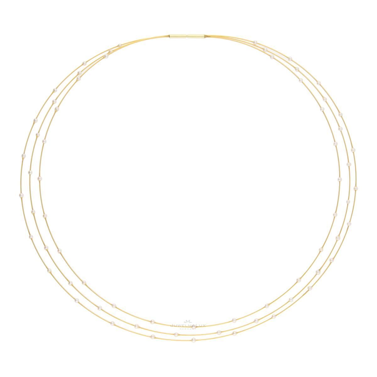 JuwelmaLux Perlen Brautcollier Stahlseil goldplattiert mit Süßwasser Zuchtperlen JL40