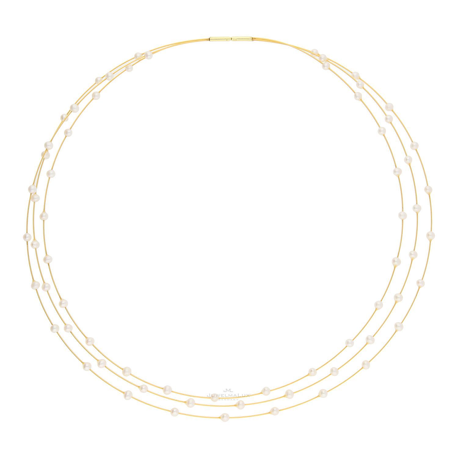 JuwelmaLux Perlen Brautcollier Stahlseil goldplattiert Süßwasser Zuchtperle JL40-05-0