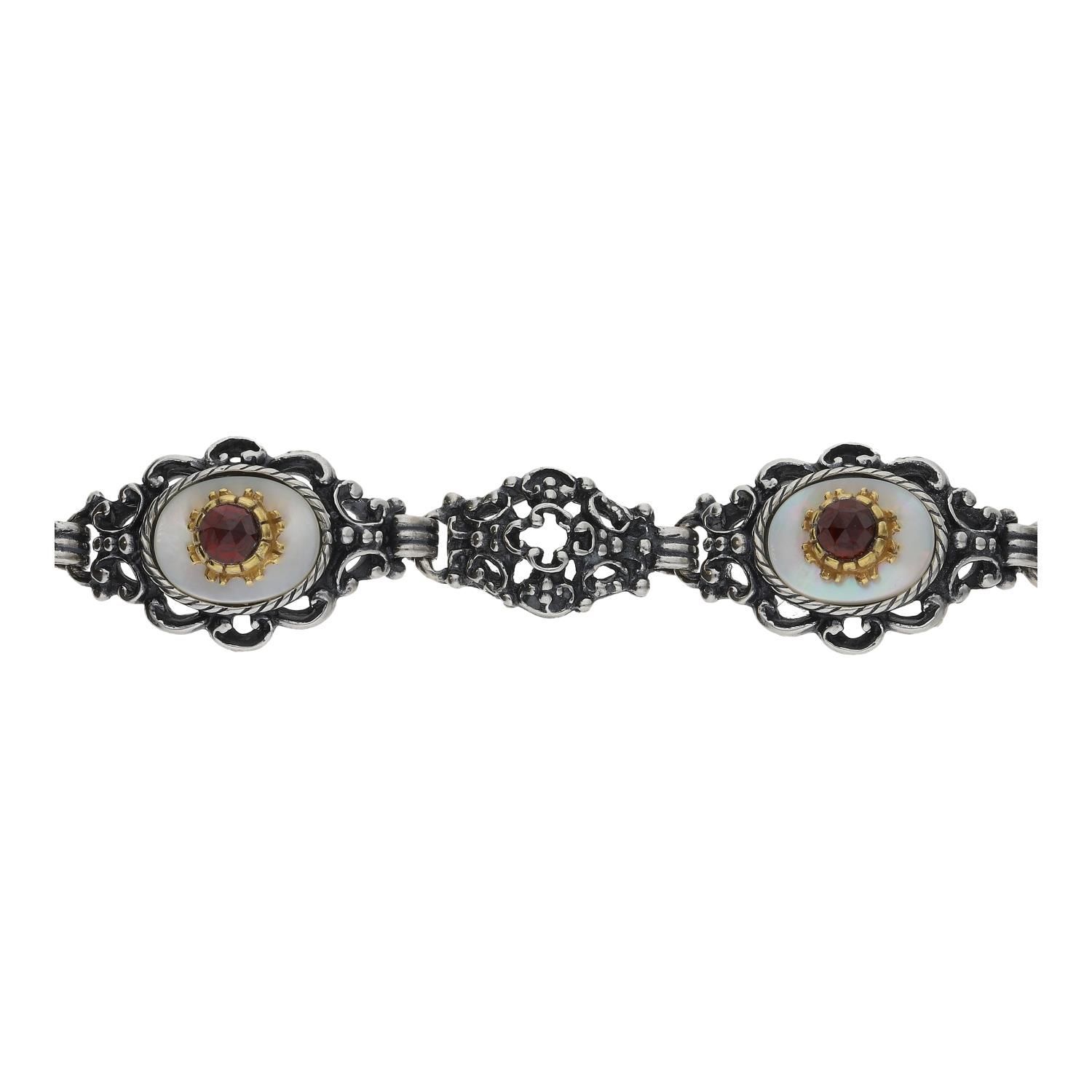 JuwelmaLux Tracht Armband Silber 925 teils vergoldet Granat Perlmutt JL17-03-0039