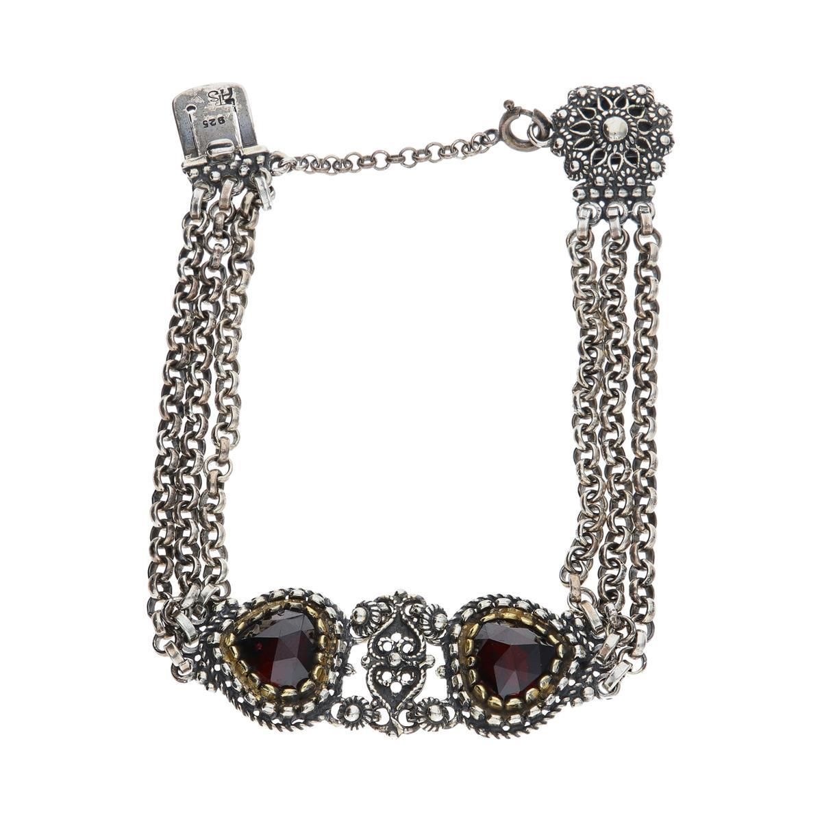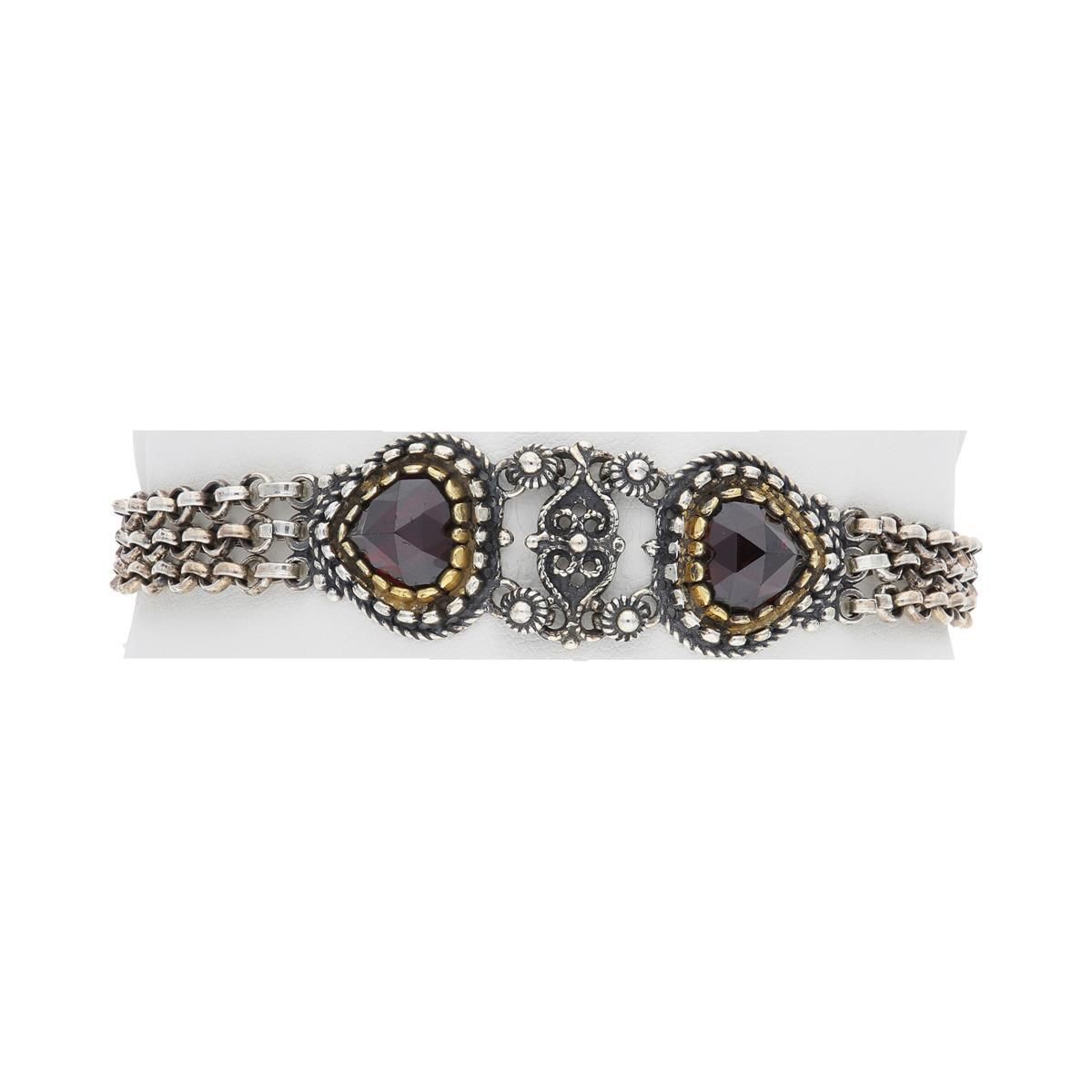 JuwelmaLux Trachten Armband 925/000 Silber geschwärzt, vergoldet, Granat JL30-03-4790