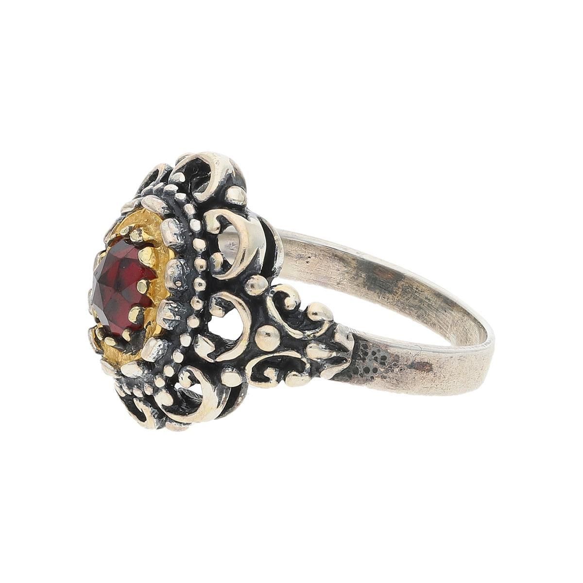 JuwelmaLux Trachten Damenring 925/000 Silber, Granat, geschwärzt, vergoldet
