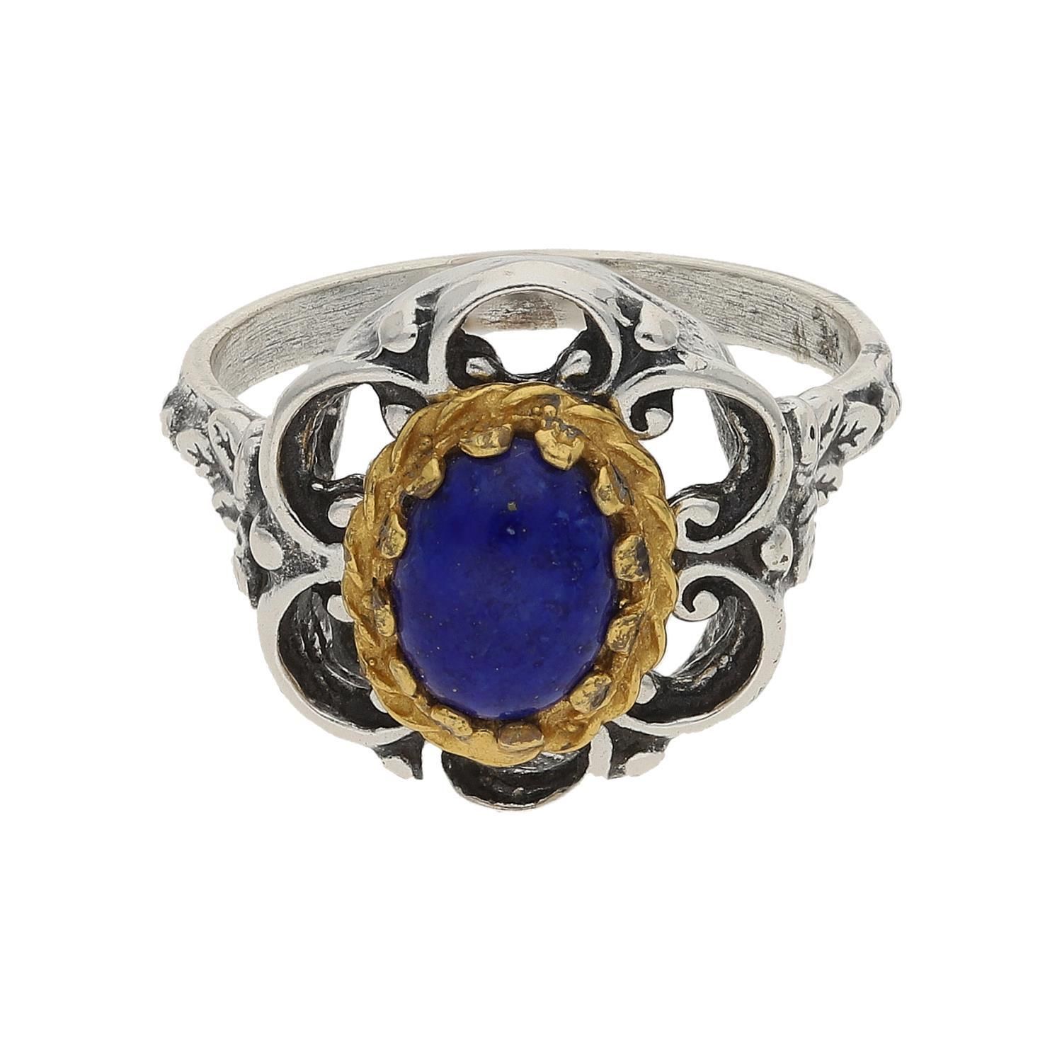 JuwelmaLux Trachten Ring 835/000 Silber, geschwärzt, teilw. vergoldet, Lapislazuli
