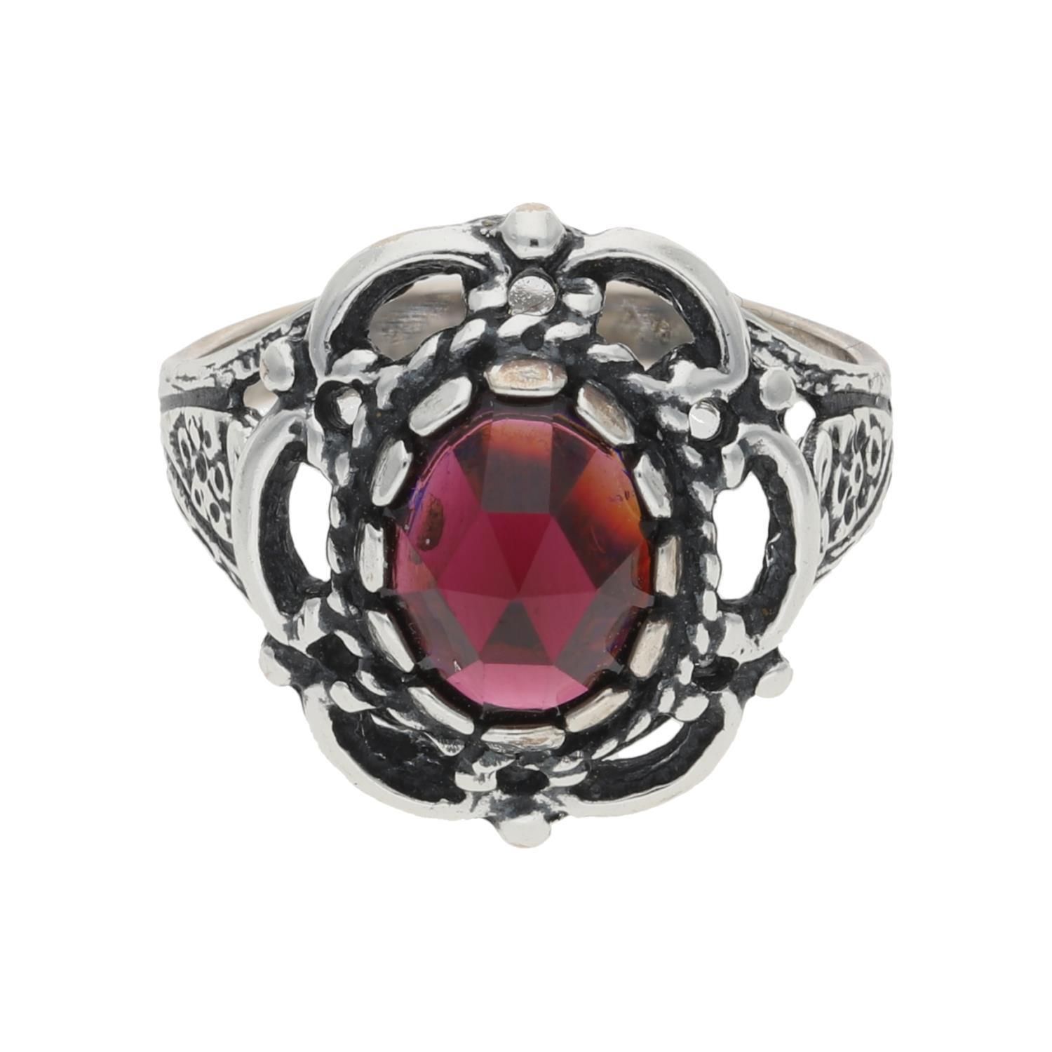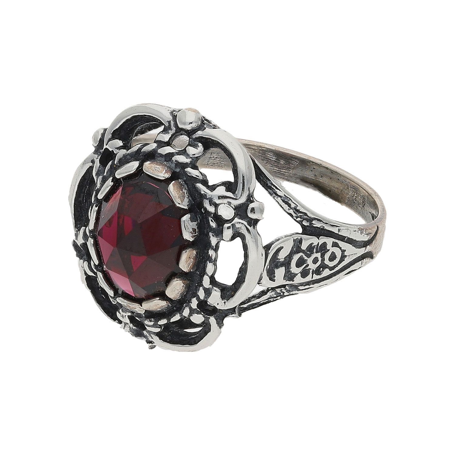 JuwelmaLux Trachten Ring 925/000 Silber, geschwärzt, mit Granat JL30-07-4875