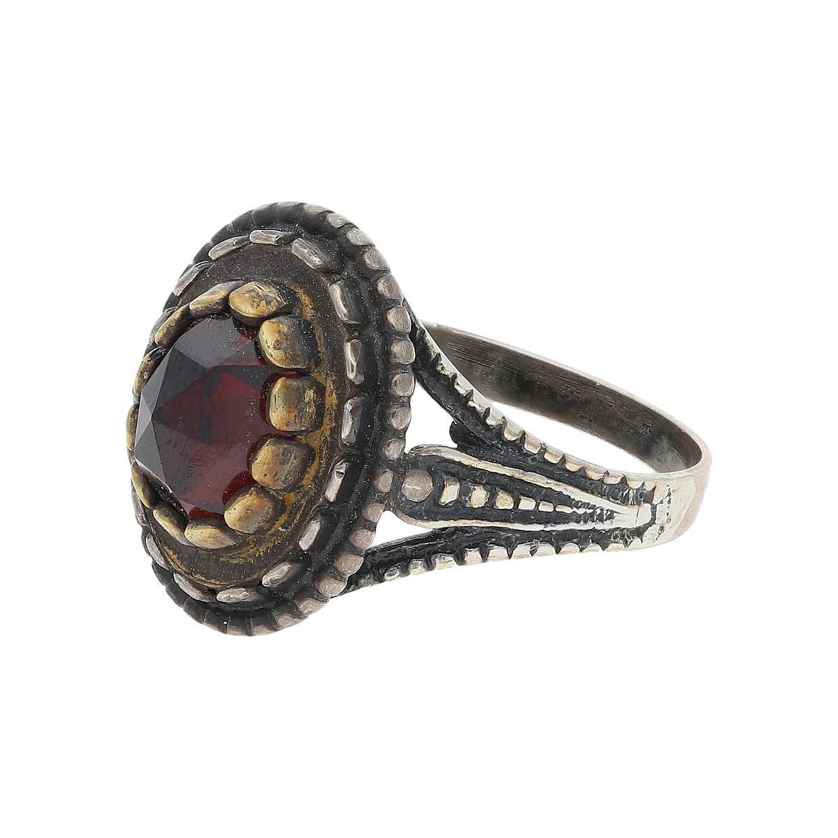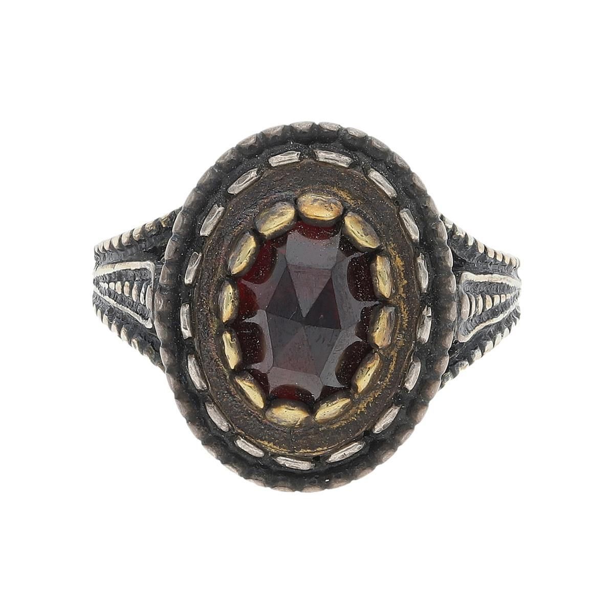 • JuwelmaLux Trachten Damenring 925/000 Silber, Granat, geschwärzt, vergoldet