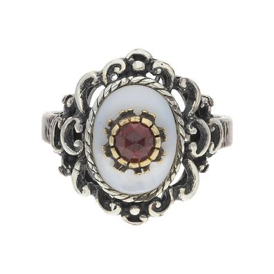• JuwelmaLux Trachten Damenring 925/000 Silber, Perlmutt, Granat, geschwärzt