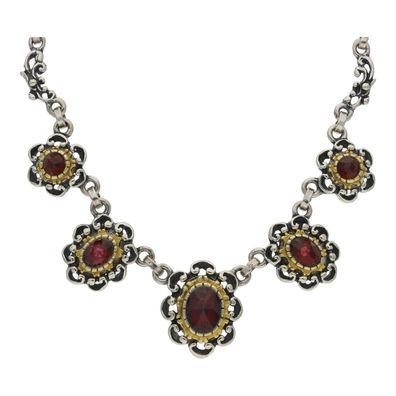 • JuwelmaLux Trachten Collier 835/000 Silber, geschwärzt, vergoldet, Granat