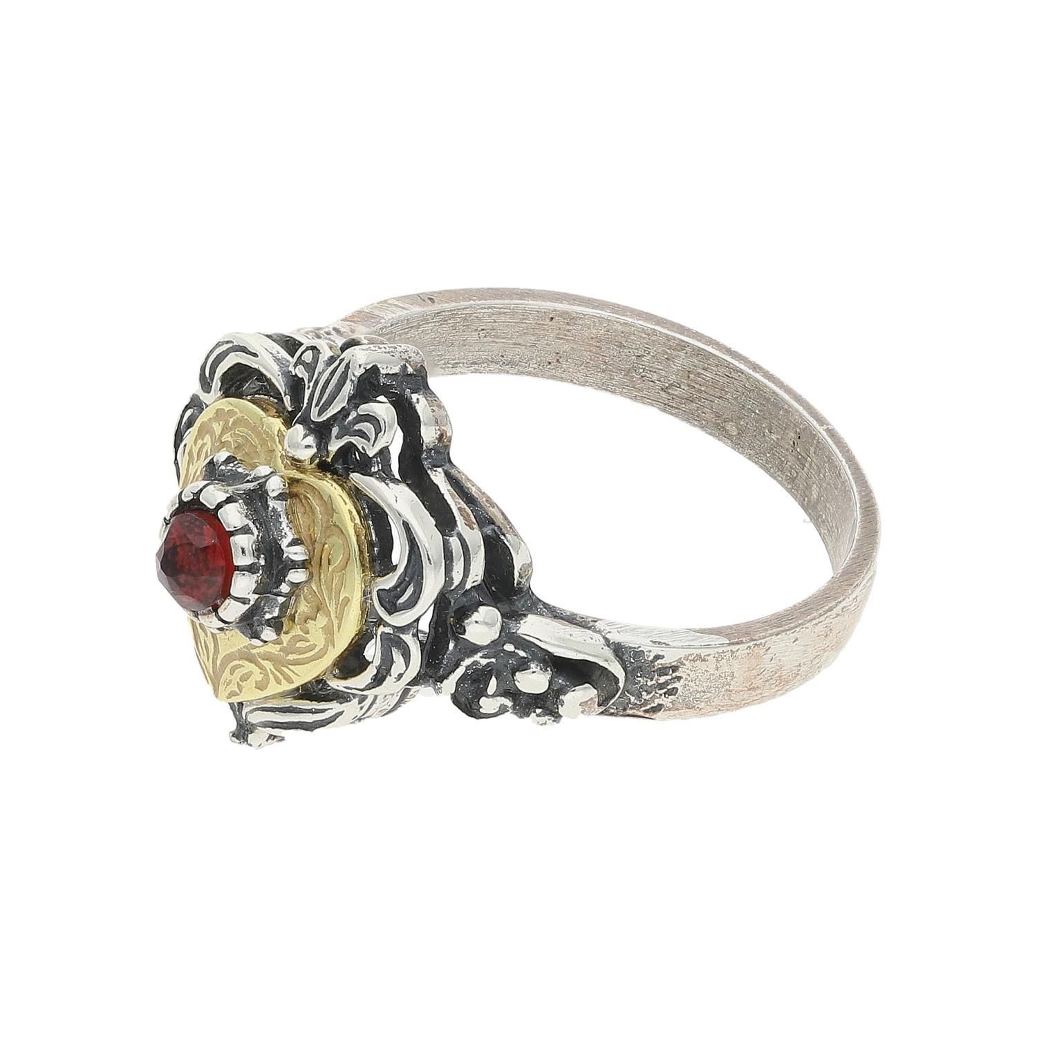 JuwelmaLux Trachten Ring Echt Silber 925 teil vergoldet mit Granat JL17-07-0022