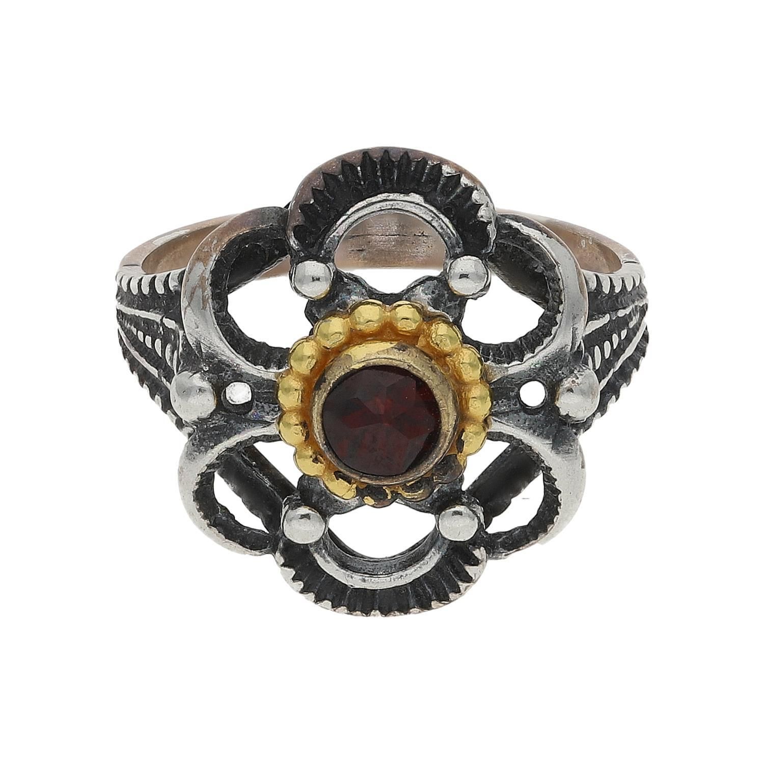 JuwelmaLux Trachten Ring Silber, geschwärzt, vergoldet, mit Granat JL30-07-4873