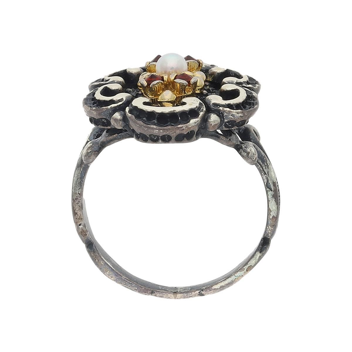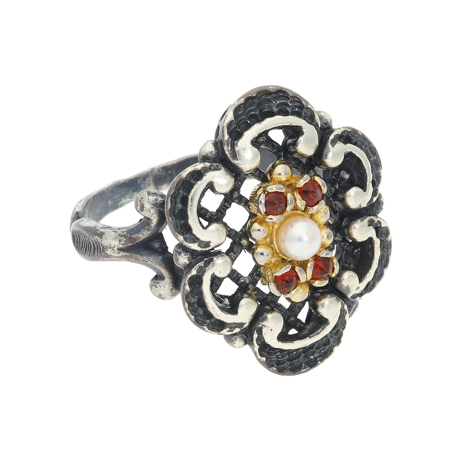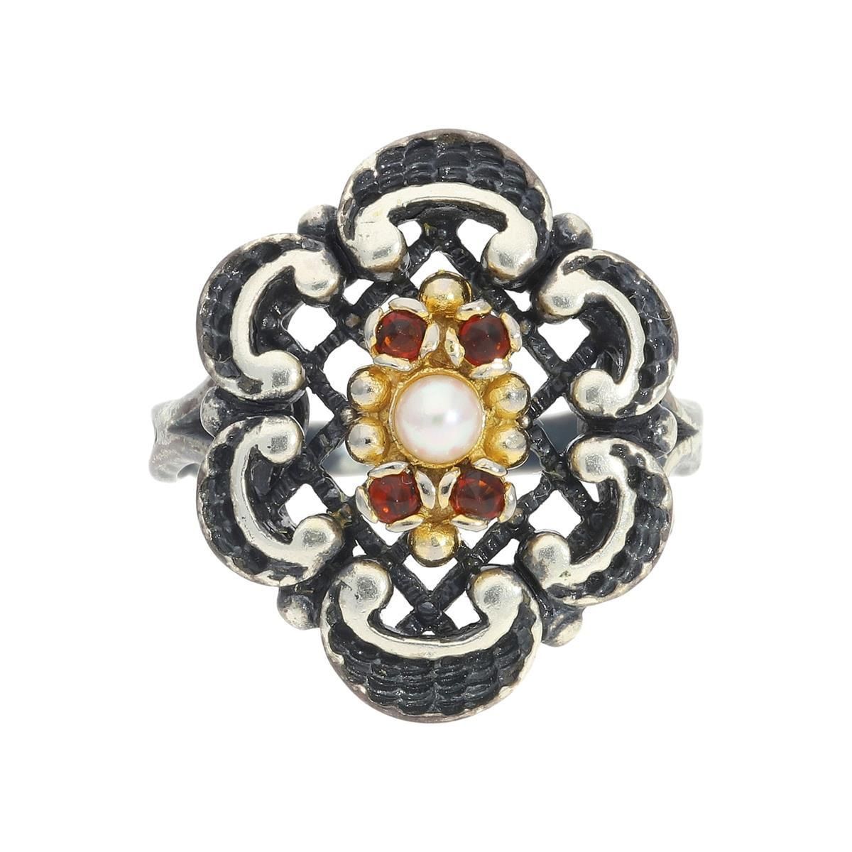 JuwelmaLux Trachtenring mit Perle und Granat echt Silber 925 JL30-07-5118
