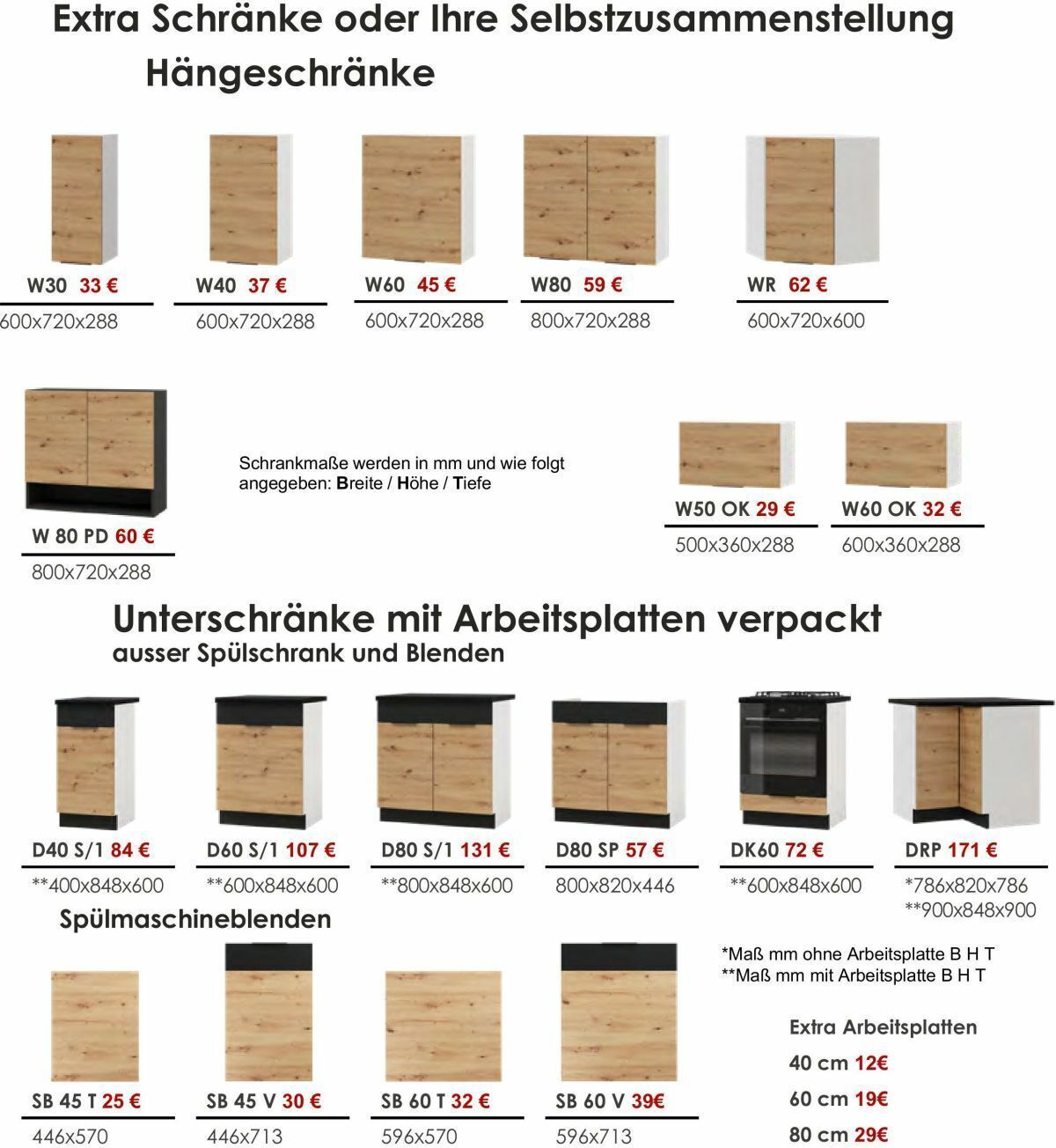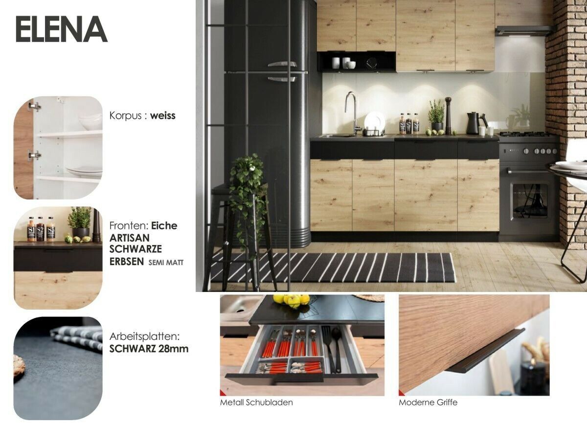 Küche Schränke Küchenzeile erweiterbar Eiche Artisan schwarz mit Arbeitsplatten