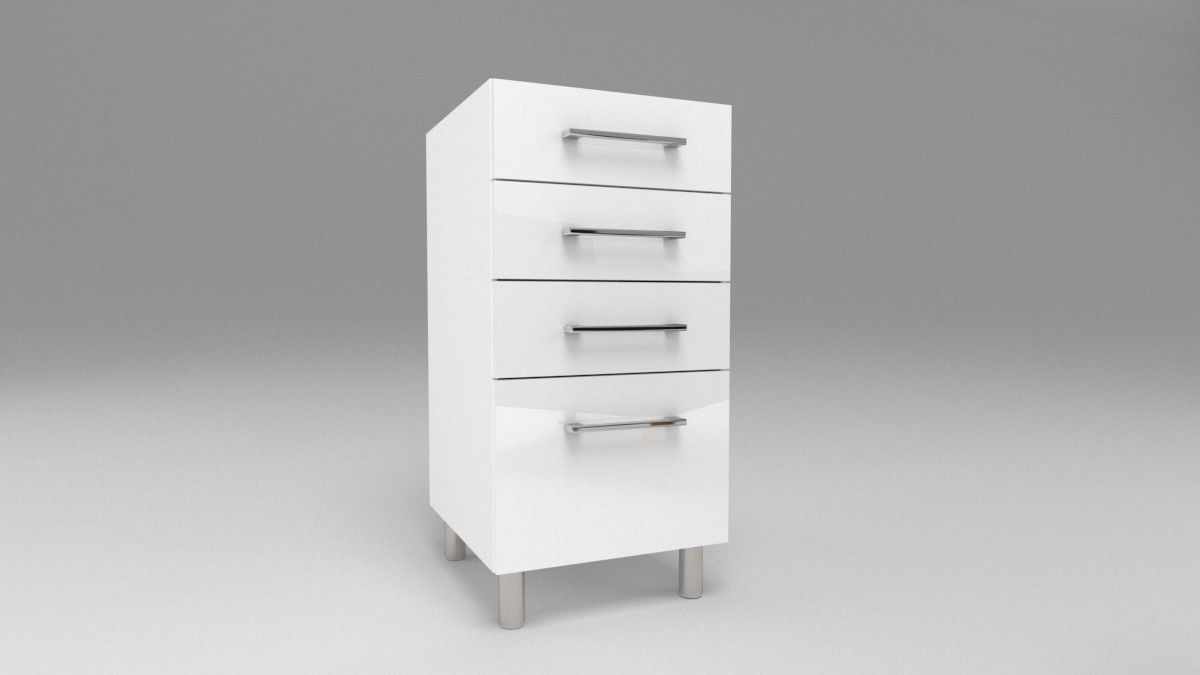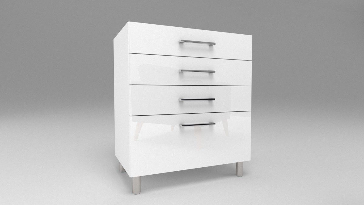 Küchen Unterschrank mit 4 Schubladen Weiß 30-80 cm Chrom Füße