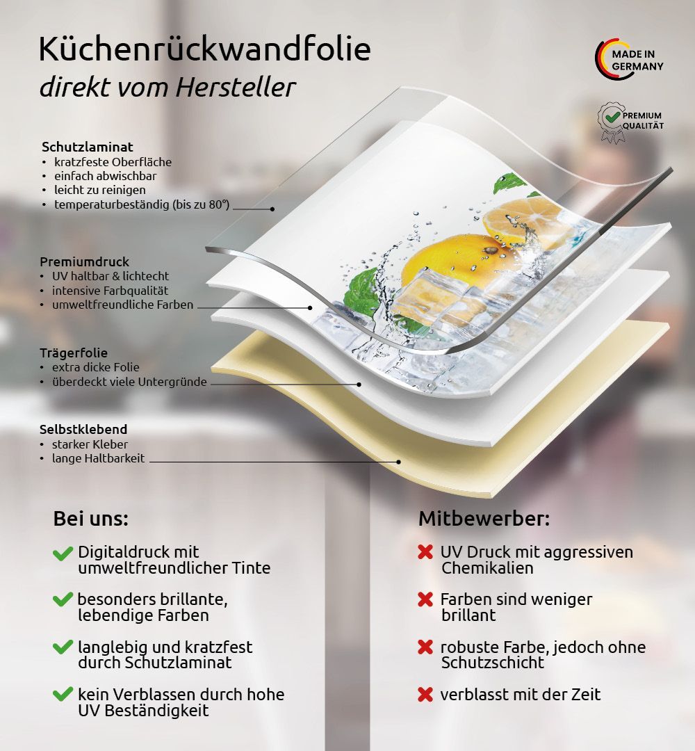 ✓ Brillanter Digitaldruck ✓ Intensive Farbqualität ✓ Mit UV-Schutzfolie & leicht zu reinigen ✓ Temperaturbeständig ✓ Einfache Montage ✓ Schneller kostenloser Versand DE