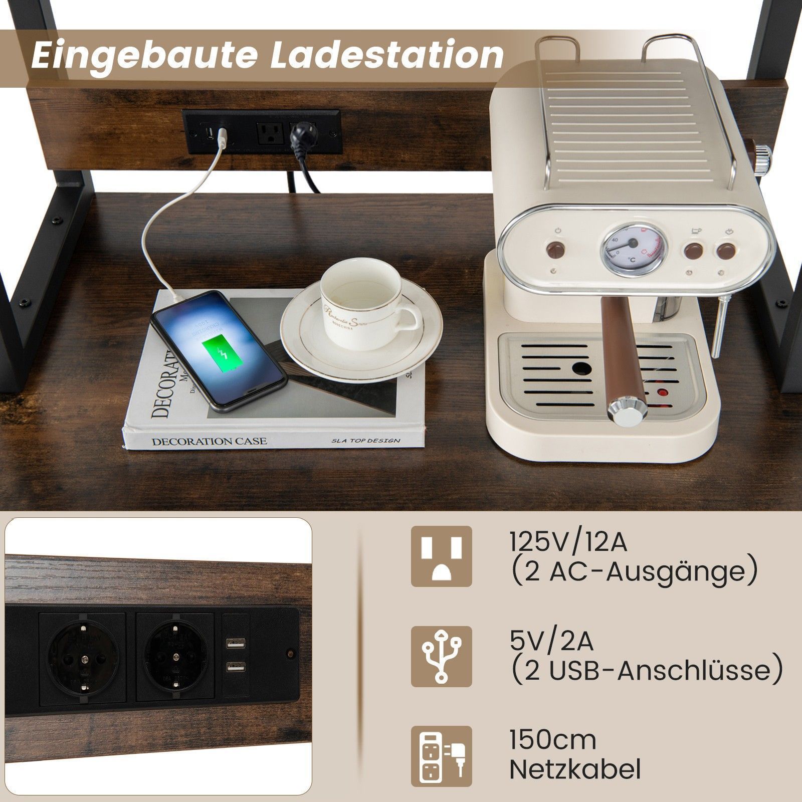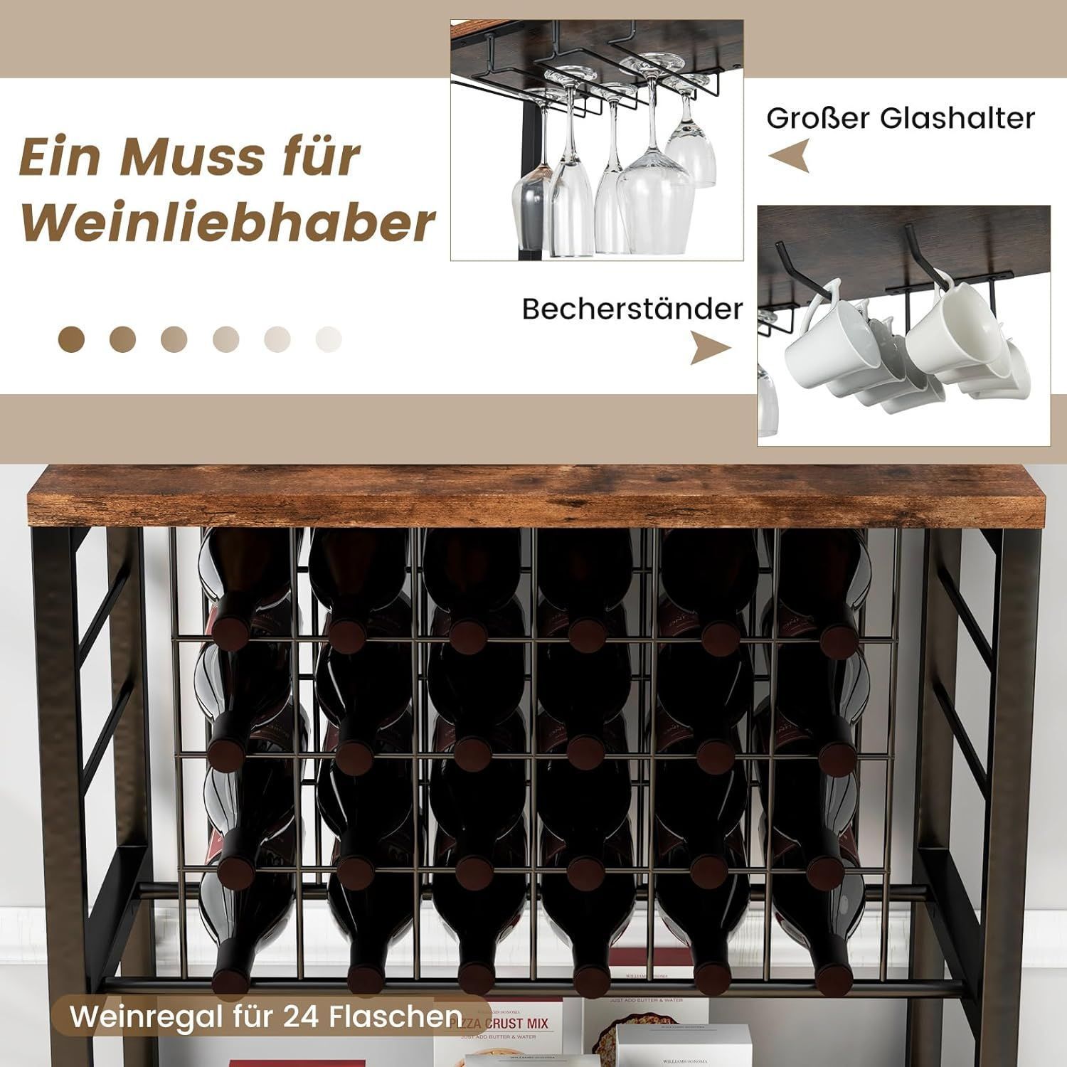 K¨¹chenregal mit Steckdosen, Weinregal f¨¹r 24 Flaschen, Glashalter, Arbeitsplatte