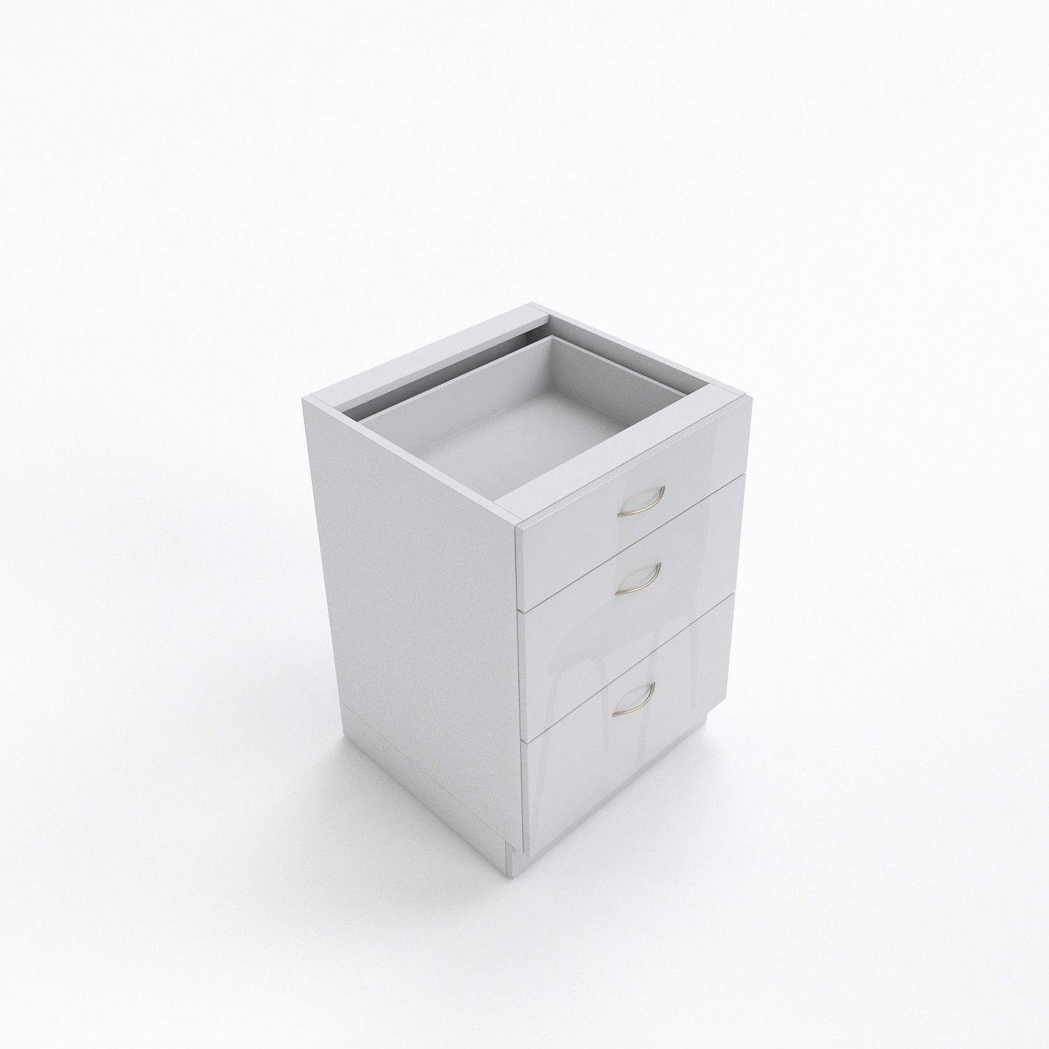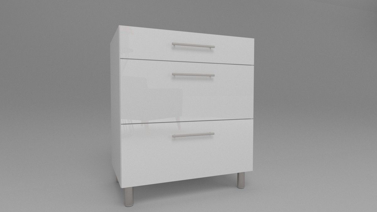 Küchenschrank 3 Schubladen Weiß Hochglanz , matt 30-80 cm Tiefe 55 Chrom Beine