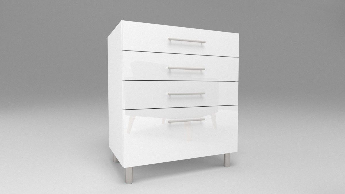Küchenschrank 4 Schubladen Weiß Hochglanz , matt 30-80 cm Tiefe 45 Beine Chrom