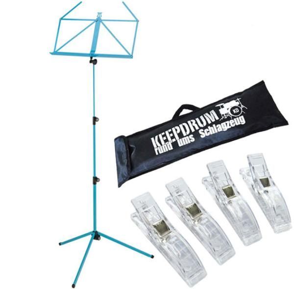 K&M 100-1 Notenständer Meerblau mit Tasche mit Klammern