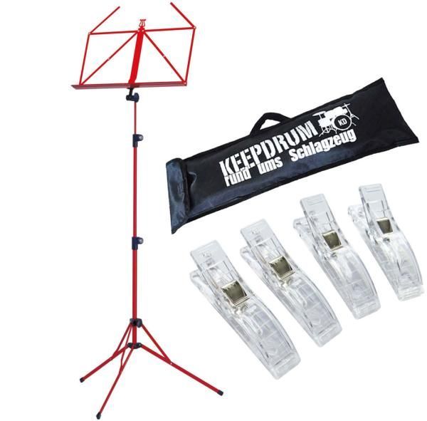 K&M 100-5 Notenständer Rot mit Tasche mit Klammern