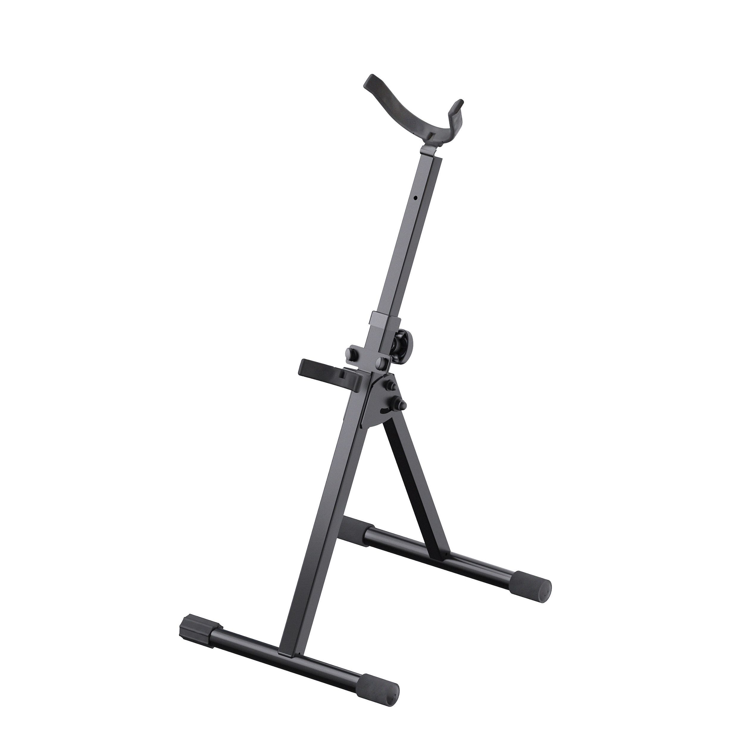 K&M 14960 Bass-Saxophonständer Äußerst stabiles Klappstativ zur Aufnahme von schweren Bass-Saxofonen. Dank einer Vielzahl von Einstellmöglichkeiten ist das Stativ für die unterschiedlichsten Größen und Modelle geeignet. So kann z.B. der Abstand zwischen den beiden gummierten, instrumentenschonenden
