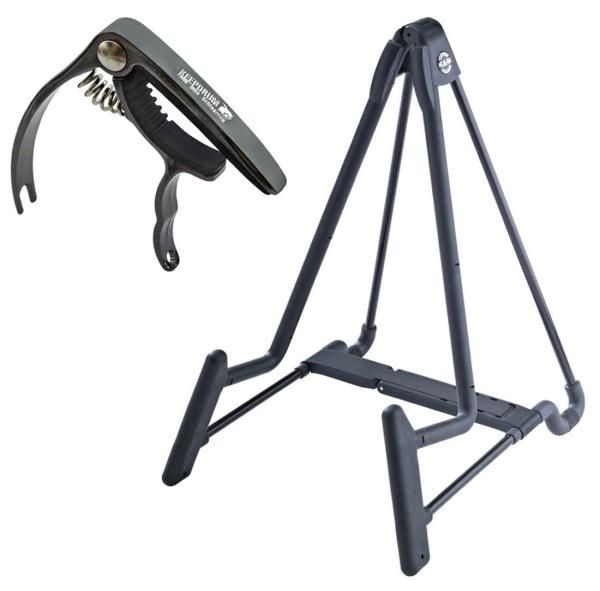 K&M 17581 Heli Gitarrenständer mit Kapodaster Schwarz