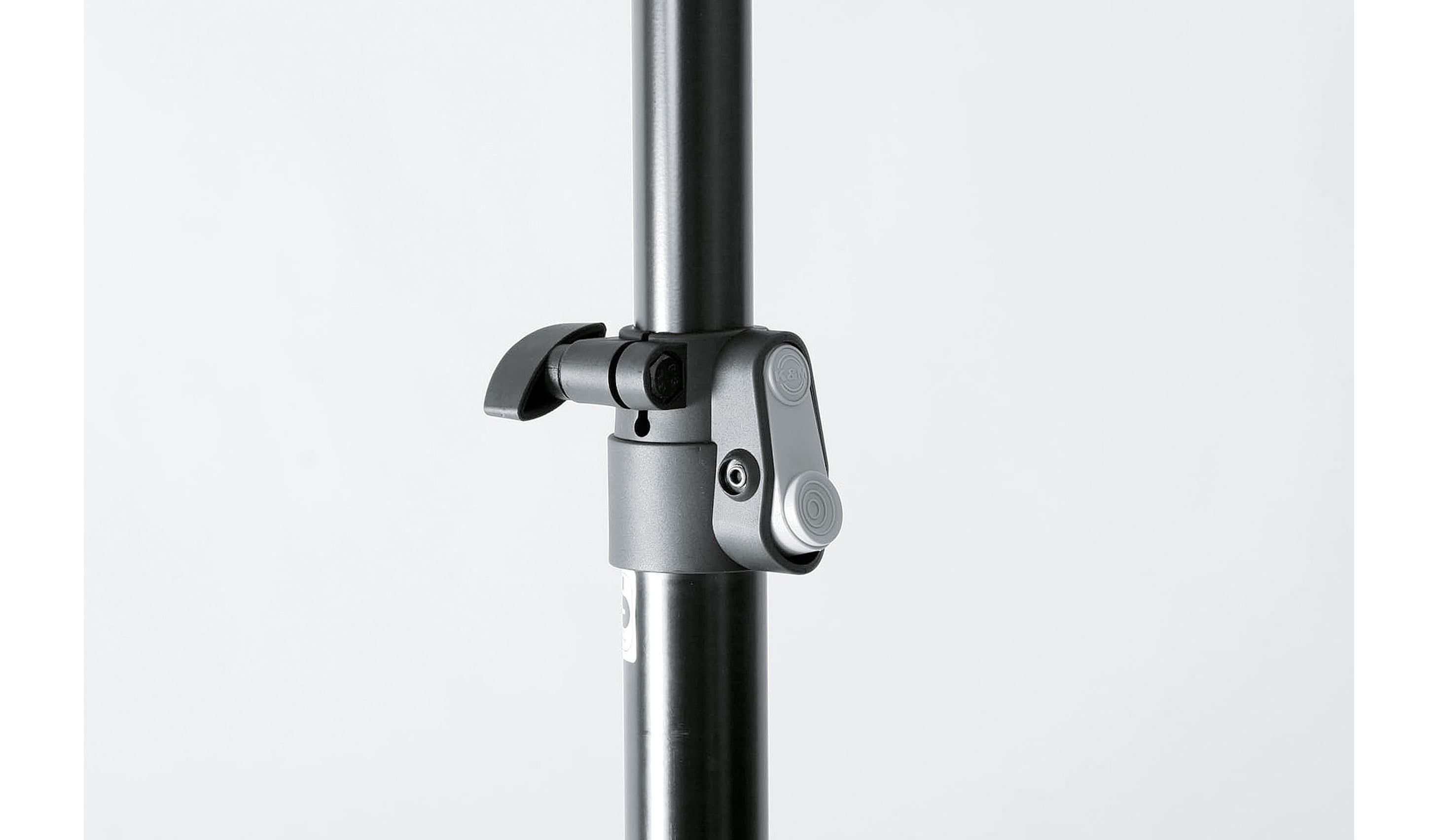 K&M 21449 Boxenständer-Set Zwei leicht zu transportierende K&M Boxenstative aus Aluminium in einer Tragetasche. Glasfaserverstärkte Verbindungselemente und die kompakte Spannschelle mit dem patentierten Druckknopfsystem ermöglichen die bedienerfreundliche Höhenverstellung des Stativs und sorgen für