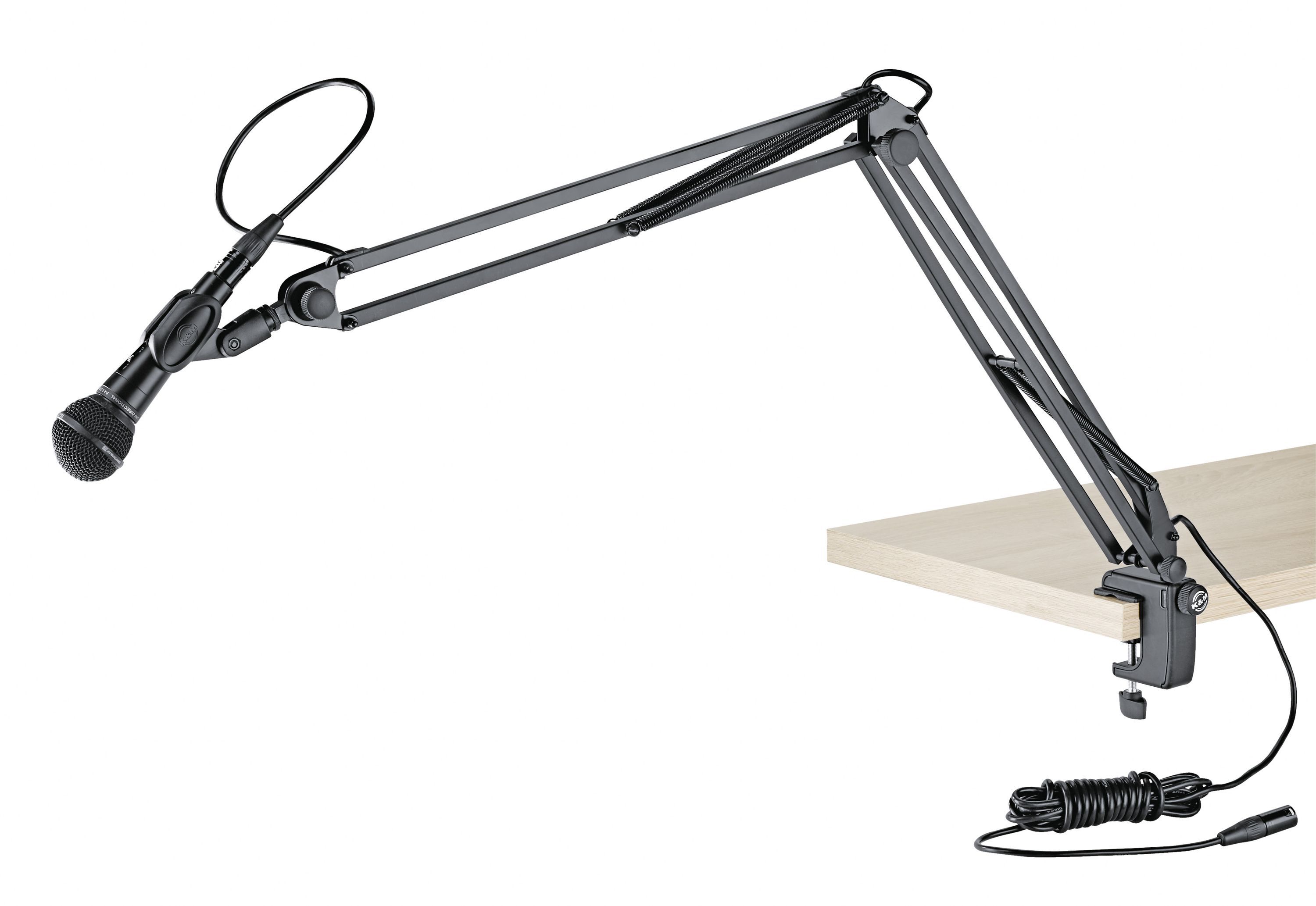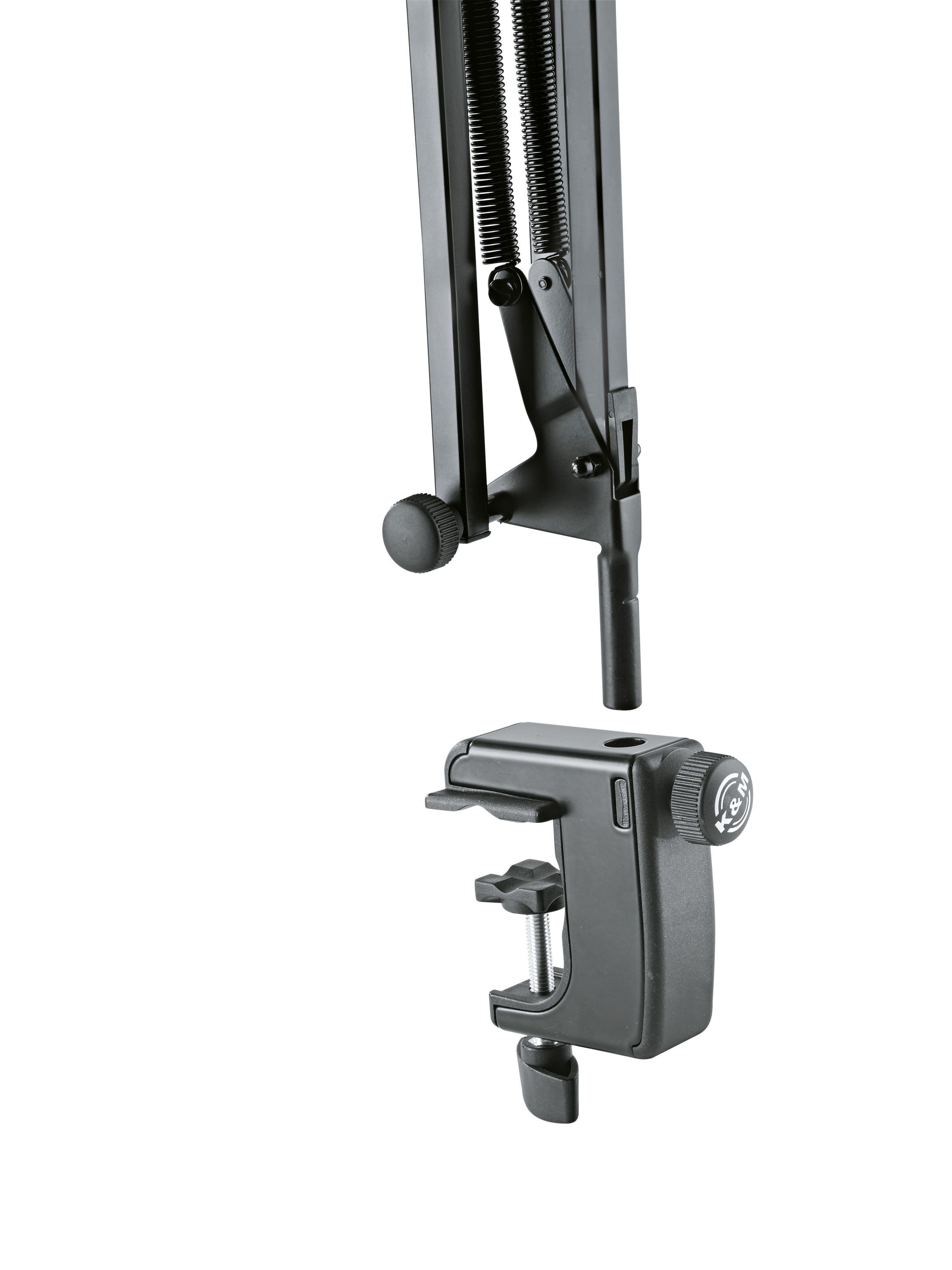 K&M 23850 Mikrofonarm Unser beliebter und leichtgängiger Tisch-Mikrofonarm mit 3 8' bzw. 5 8' Gewindeanschluss für Tonstudios und Multimedia-Arbeitsplätze jetzt mit neuer innovativer Tischklammer. Mikrofone mit einem Gesamtgewicht von bis zu 0,8 kg lassen sich einfach und bequem ausrichten und posit