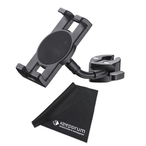 K-M Smartphone-Halter 19764 mit Klemme für Rohre und Stative mit Tuch
