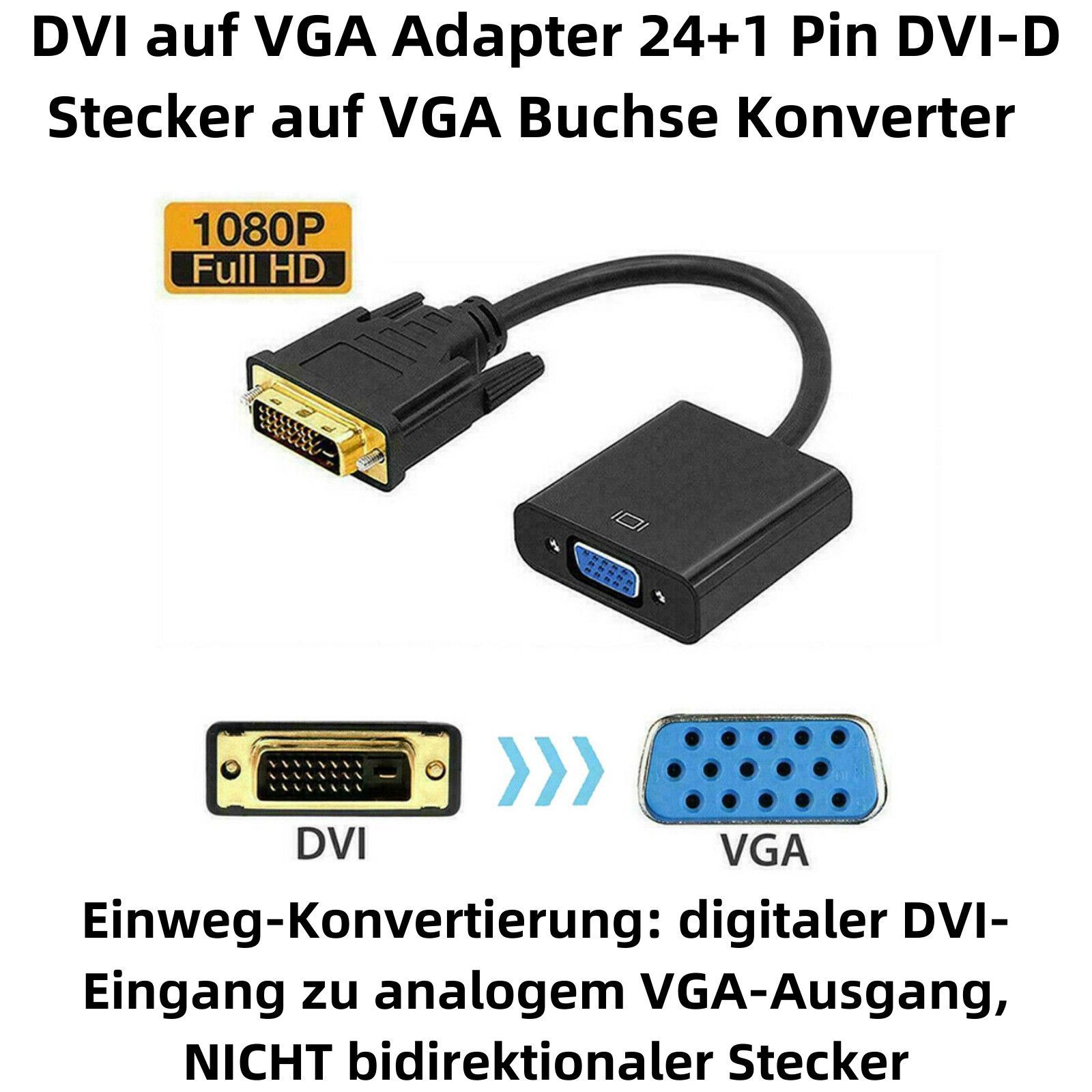 K30 DVI auf VGA Adapter 24 + 1 Pin DVI-D Stecker auf VGA Buchse Konverter 1080P 23cm