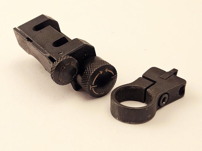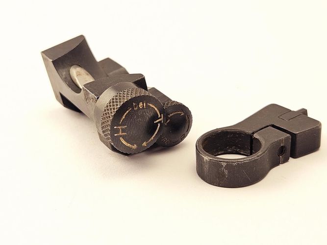 K31 Schmidt Rubin Grünig+Elmiger Feinvisier Visierkorrektor Originales Ersatzteil zu Schweizer Schmidt Rubin K31 Karabiner – 1x Feinvisier – Visierkorrektor vom Schweizer Hersteller Grünig + Elmiger AG mit speziellem Kornträger + höherem Korn (schnelle Montage ohne Änderungen am Karabine