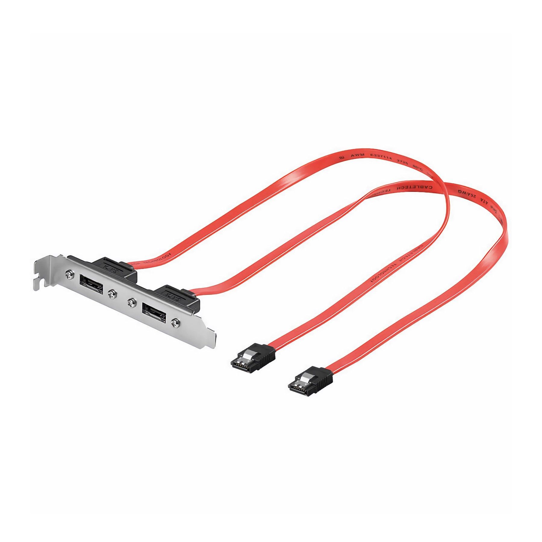 K41 eSATA Slotblech 2x eSATA 7pin Buchse extern auf intern 2x SATA 7pin Stecker