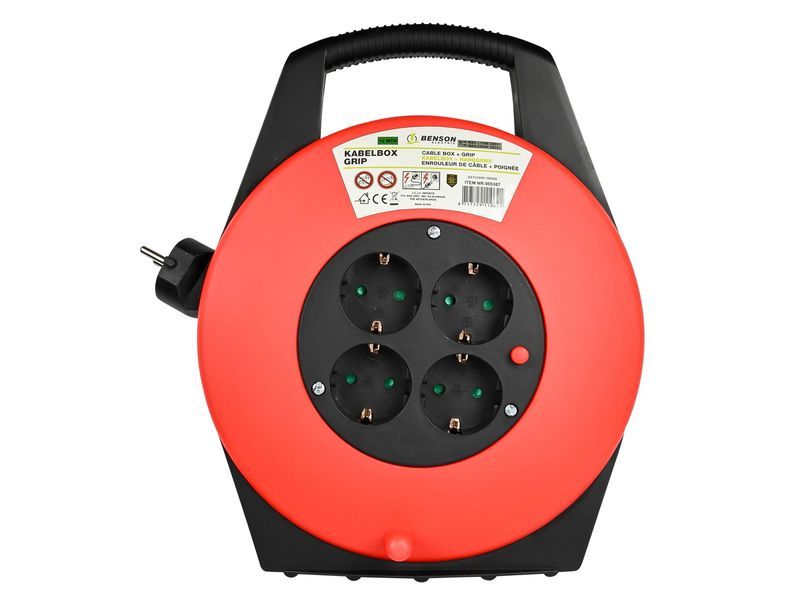 Kabelbox 10 m mit Griff – Praktisch und sicher für den Einsatz zu Hause oder im Garten! Kabellänge: Euro 10 Meter Leistung: Euro Vollgespult: 1100 Watt (4,8A) 230V, Ungehaspelt: 2300 Watt (10A) 230V Steckdosen: Euro 4x Schutzkontaktsteckdosen (Schuko) Griff: EuroEuro Einfach zu transportieren