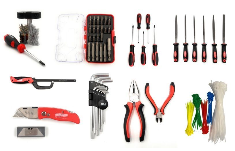 Kabelbinder Schrauben Dübel Bits Sechskant Schlüsselfeilen Klappmesser Zangen