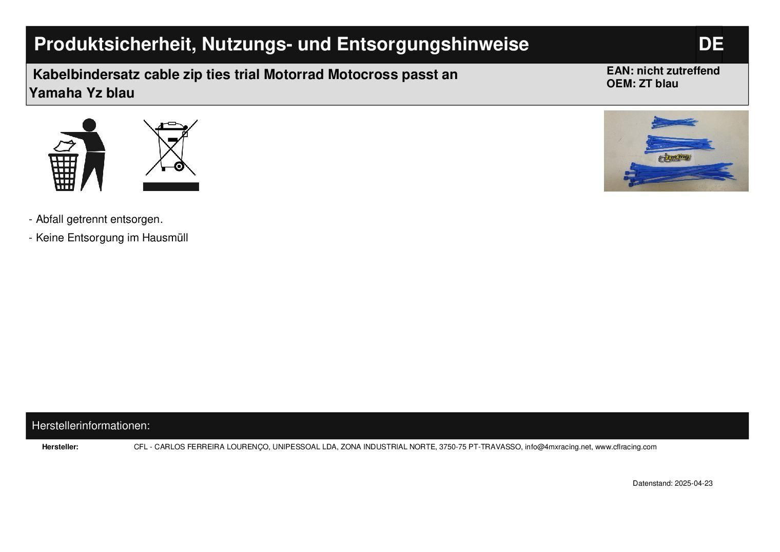 Kabelbindersatz cable zip ties trial Motorrad Motocross passt an Yamaha Yz blau In dieser Auktion gibt es folgenden Artikel zu kaufen: Kabelbindersatz (siehe Foto) Modell: universal Lieferumfang: 10 Stück 4,8 x 200 mm 10 Stück 3,6 x 140 mm 10 Stück 2,5 x 100 mm Artikelzustand: neu Bei Unklarheiten o