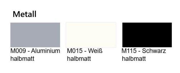 M009 - Aluminium halbmatt, M015 - Weiß halbmatt und M115 - Schwarz halbmatt