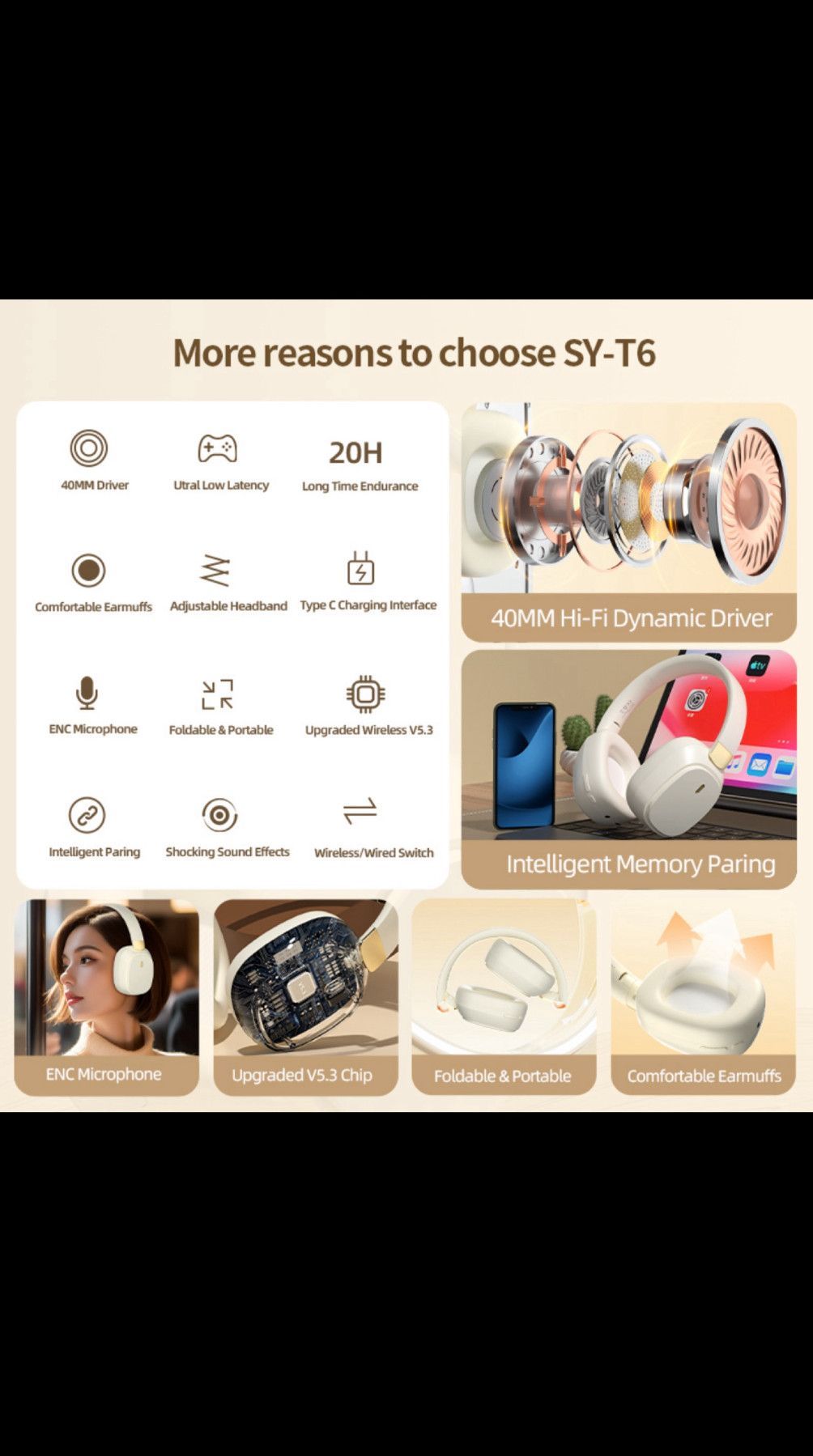 Kabellose Bluetooth Kopfhörer, Over-Ear, Mikrofon, In Ear, SY-T6