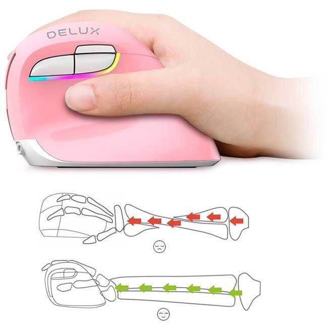 Kabellose vertikale Maus Delux M618 Mini, ergonomisch, rosa