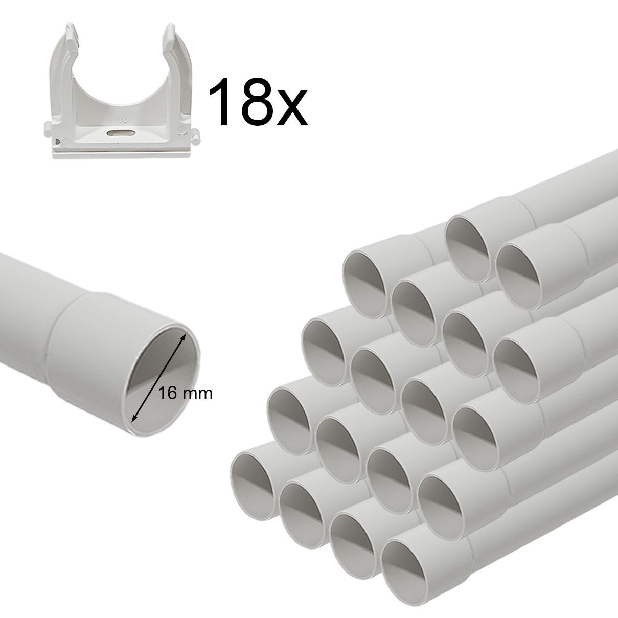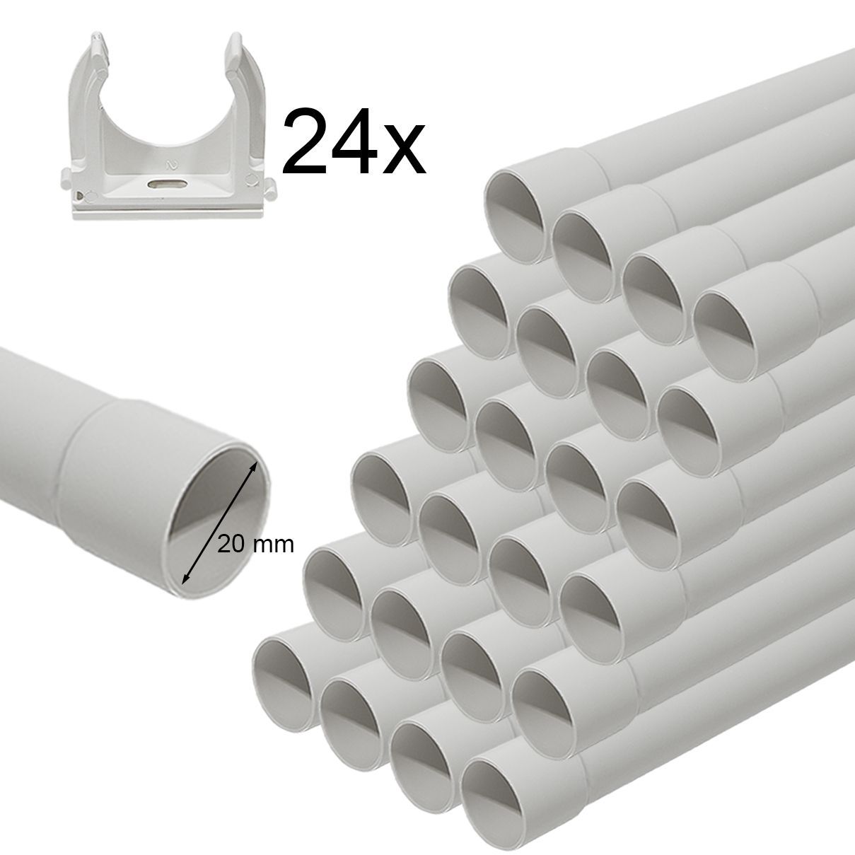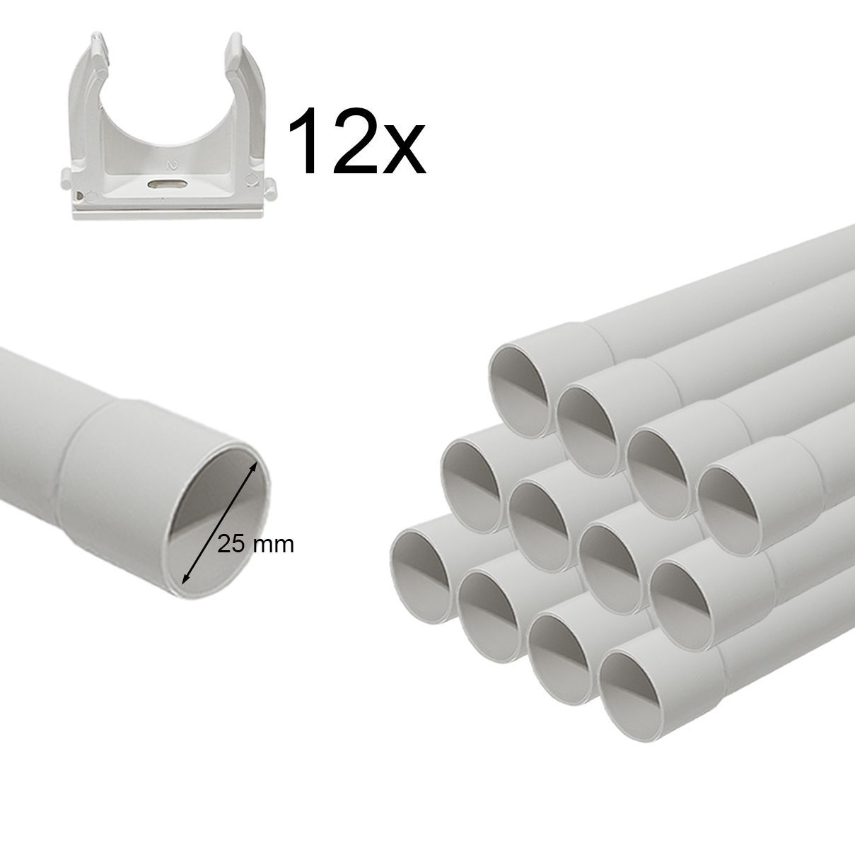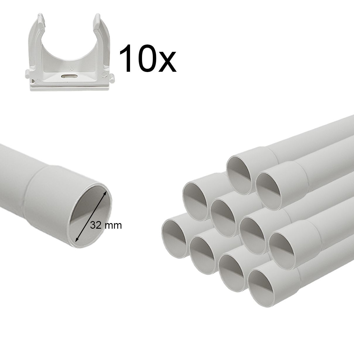Kabelrohr Leerrohr Elektrorohr Stangenrohr Installation Isolier Muffe + Schellen