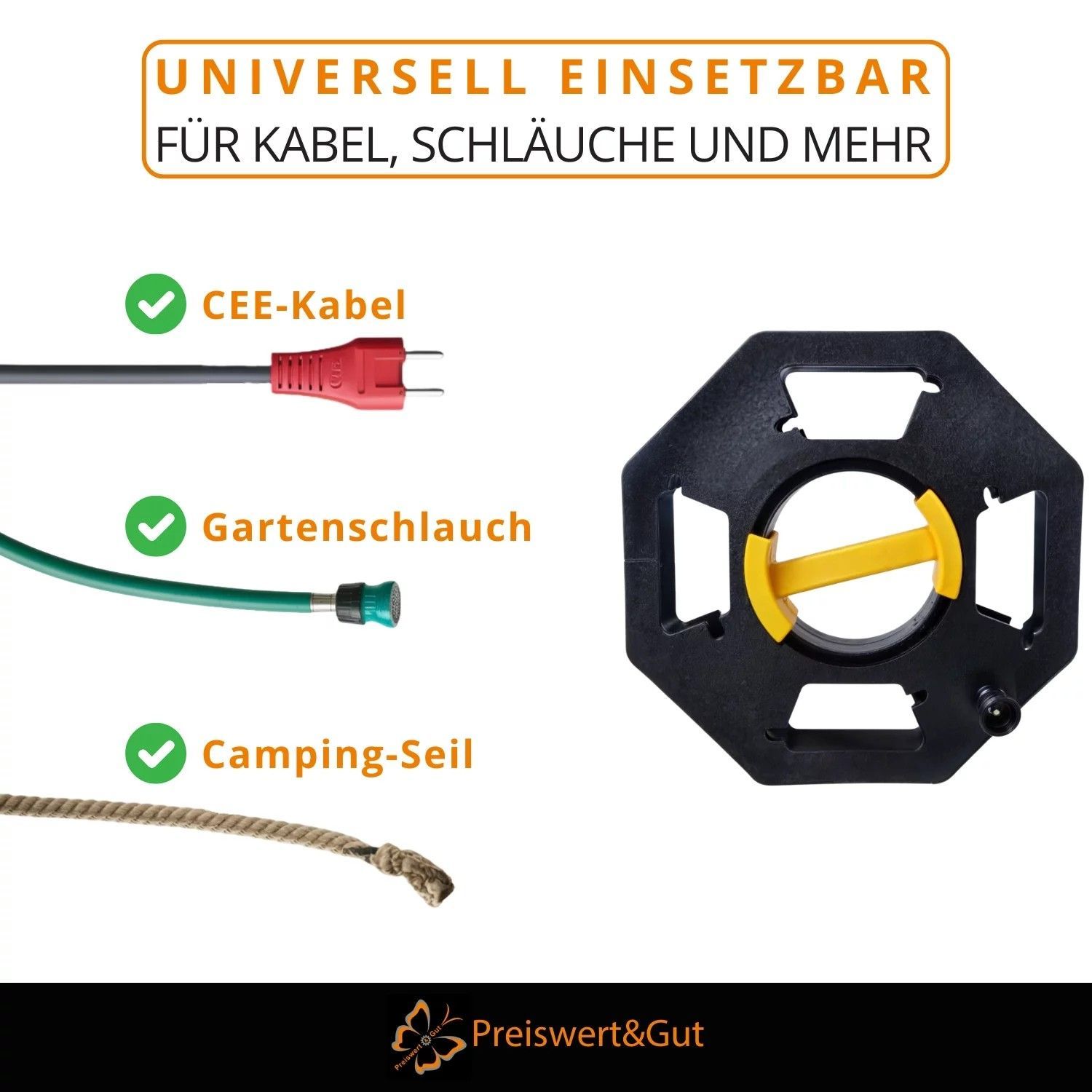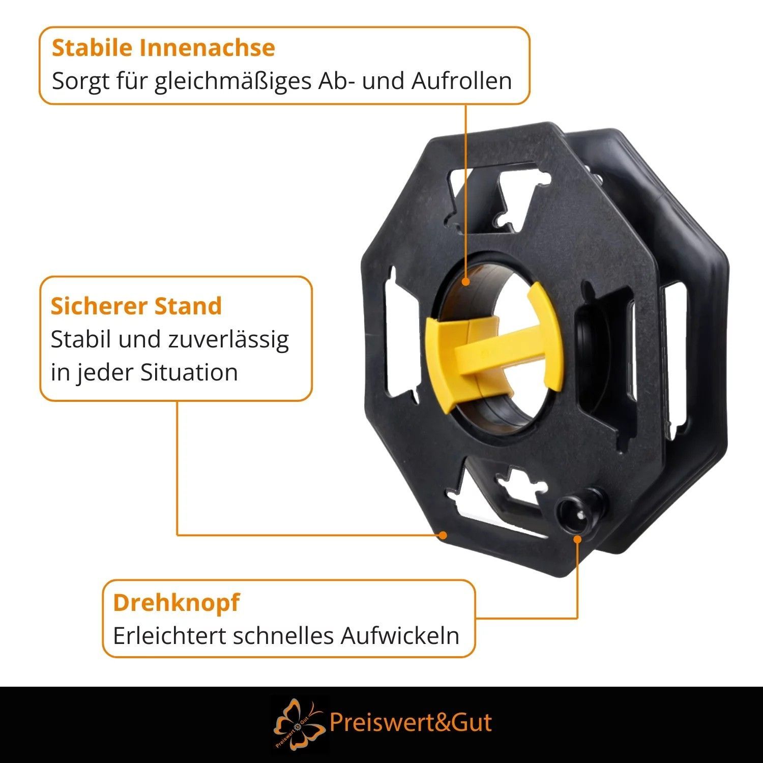 Kabeltrommel leer 25 m - Outdoor Schlauchtrommel mit Griff & Drehknopf
