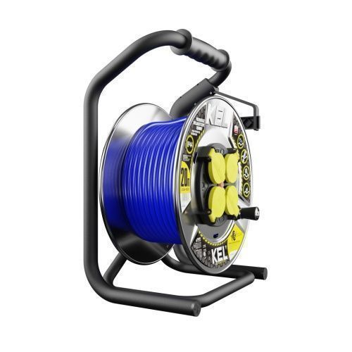 Kabeltrommel Verlängerungskabel 4x2P + PE Schuko IP44 16A 3x2,5 20m BLUE