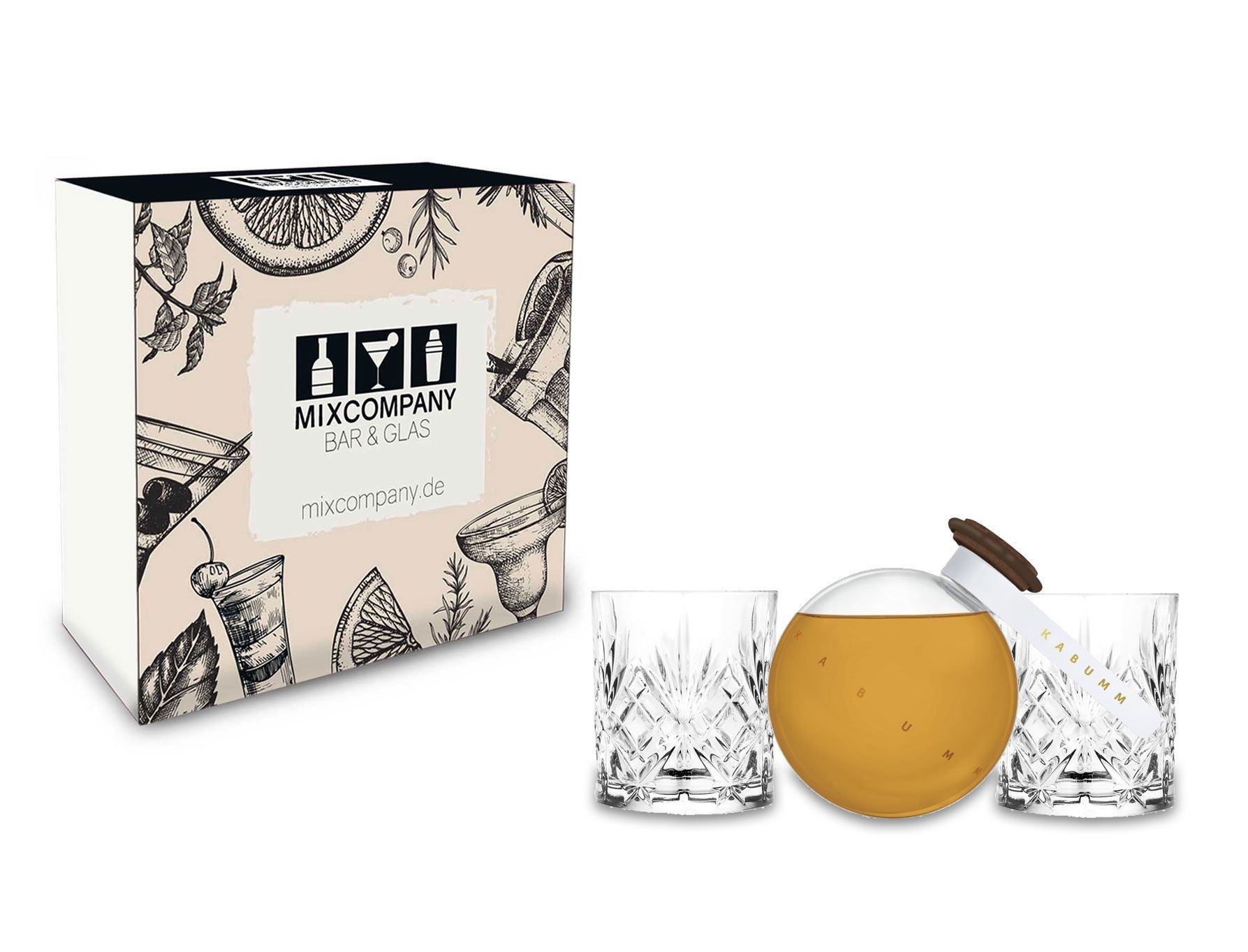 Kabumm Geschenkset - Whisky 0,7L (40% Vol) 2er Set Kristall Tumbler + Vollmundi