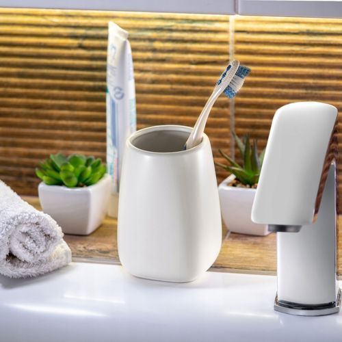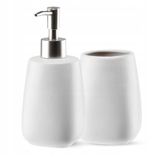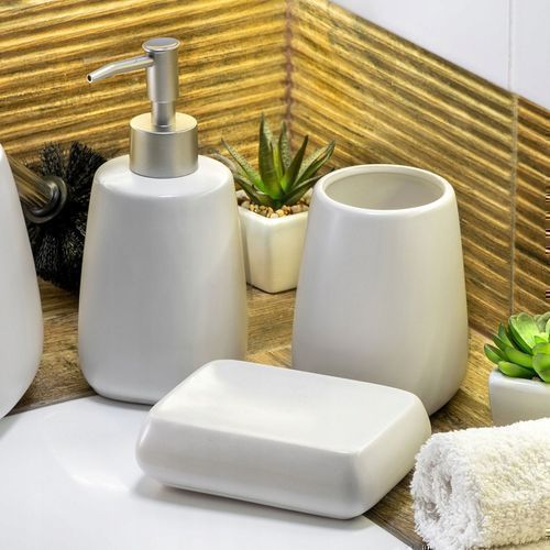 KADAX Badezimmer Set aus Keramik, Seifenspender, Badezimmerbecher, Weiß