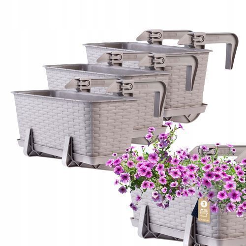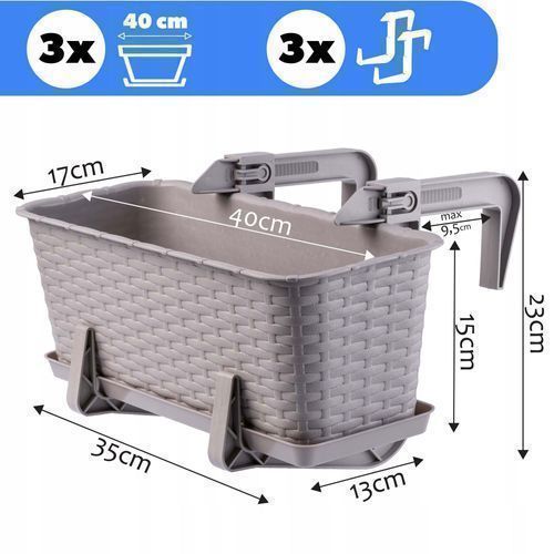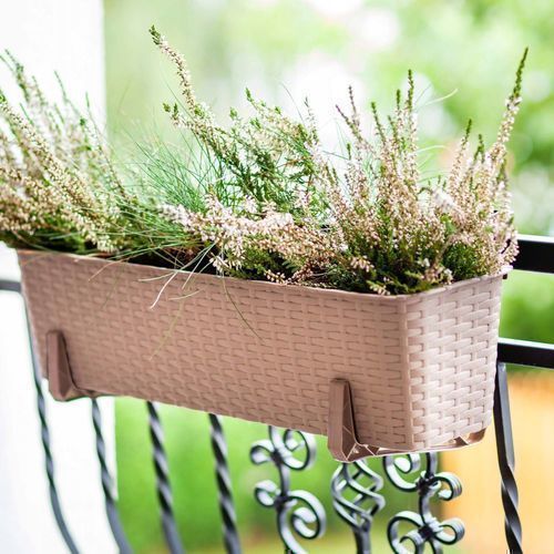 KADAX Balkontopf mit Untersatz und Griffen, 40 cm, Karamell, 3 Stück